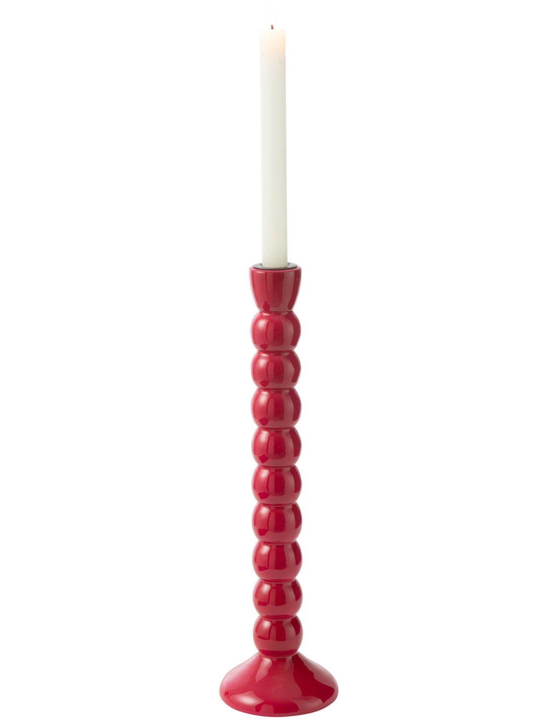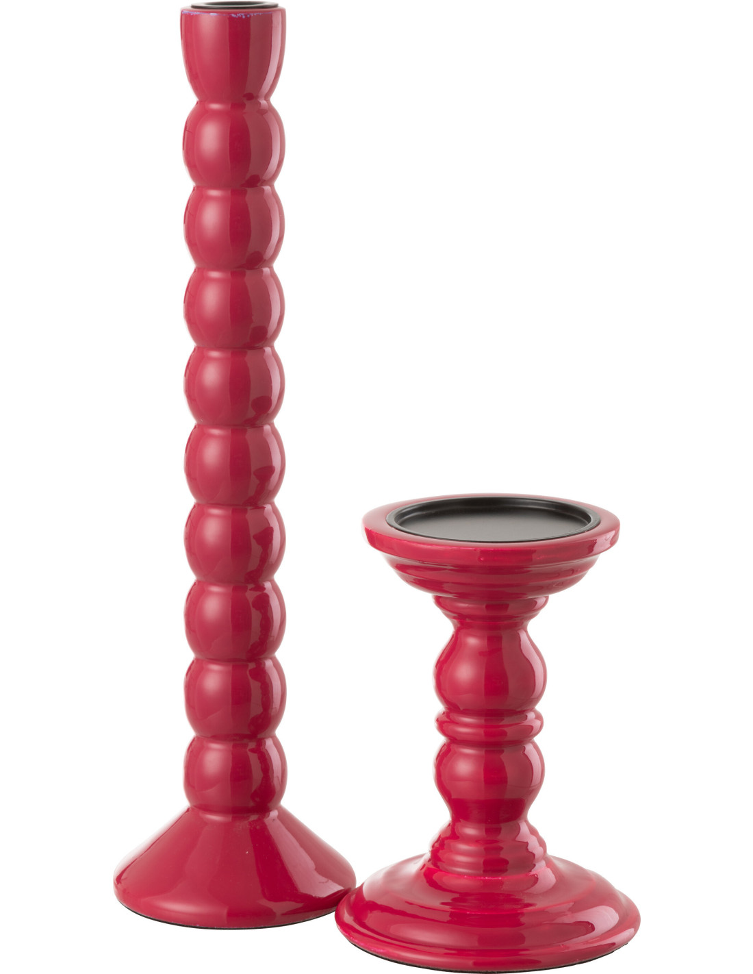 Grand Bougeoir moderne Hauteur 38 cm en Bois de manguier Rose fuchsia Métal Noir Oken