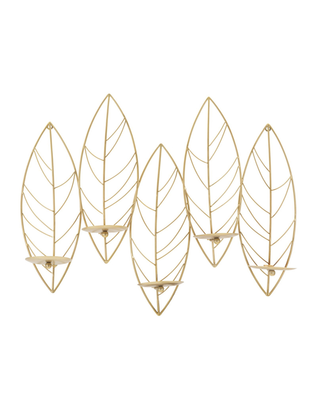 Grand Bougeoir mural design chic Feuilles 5 bougies Métal Doré Leaf