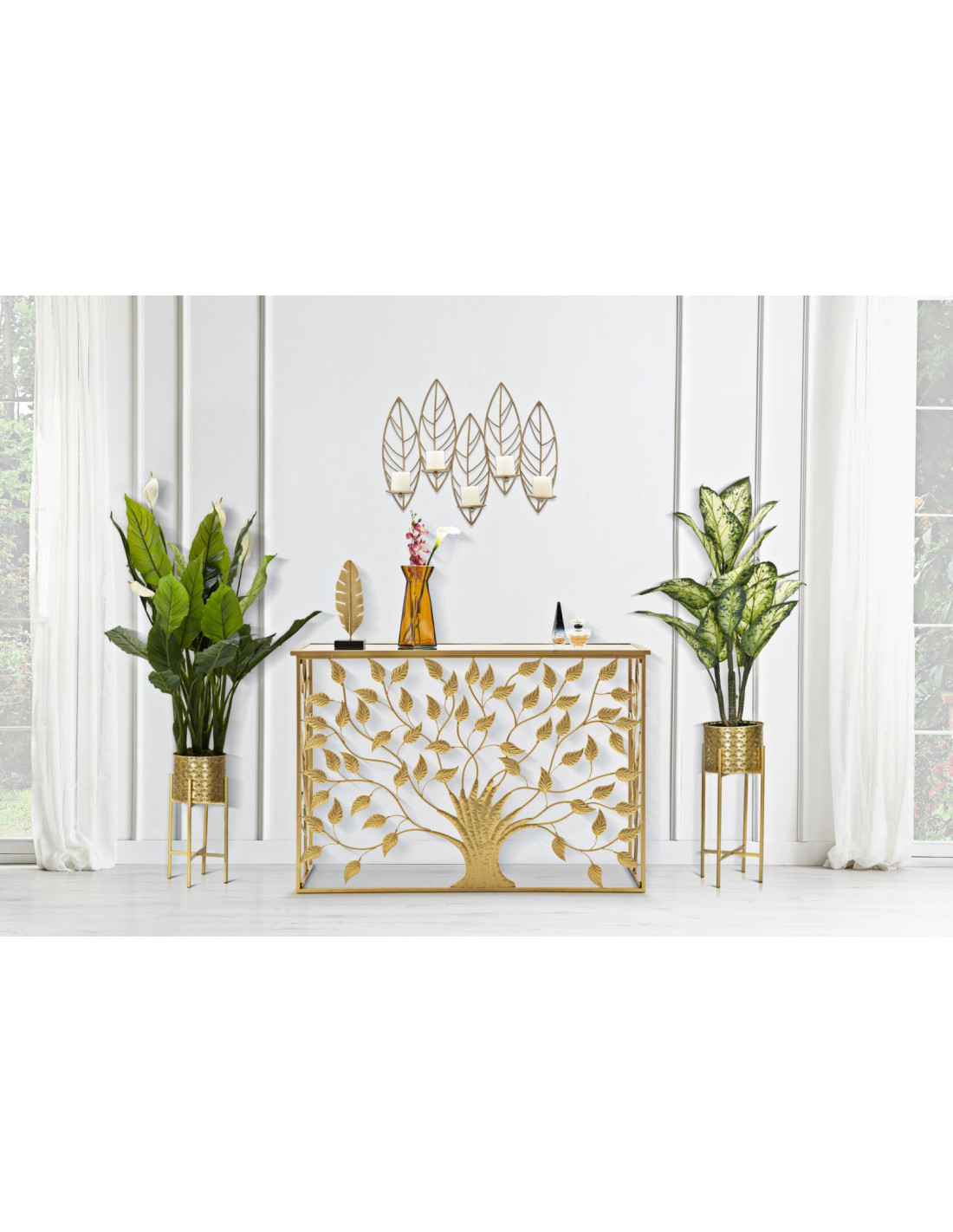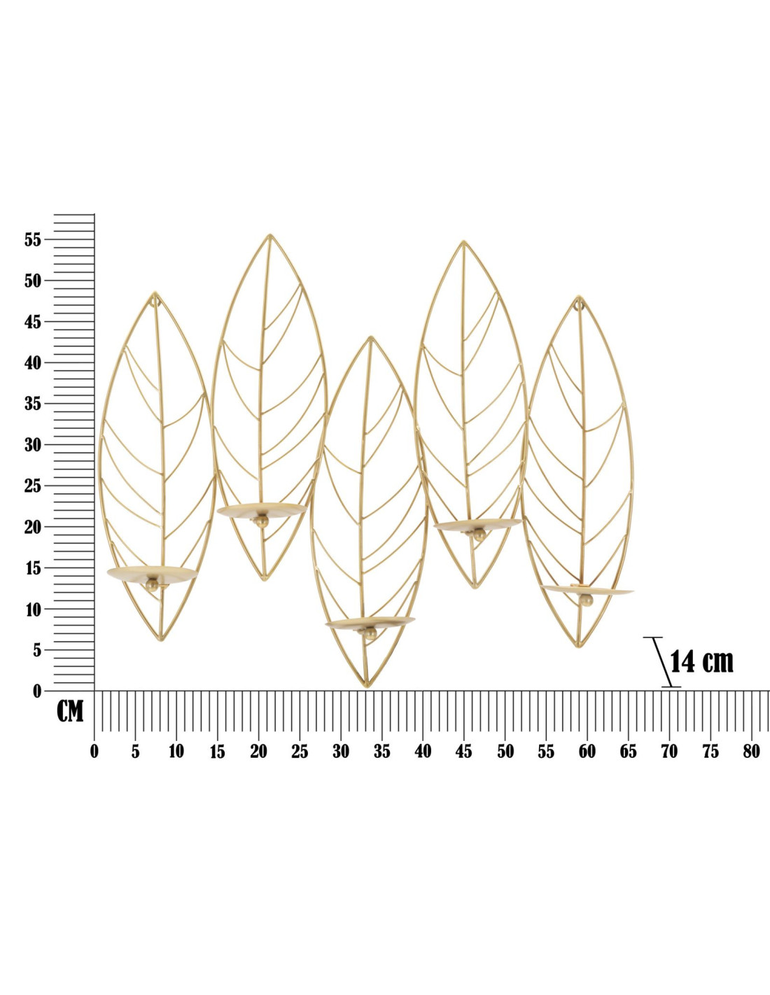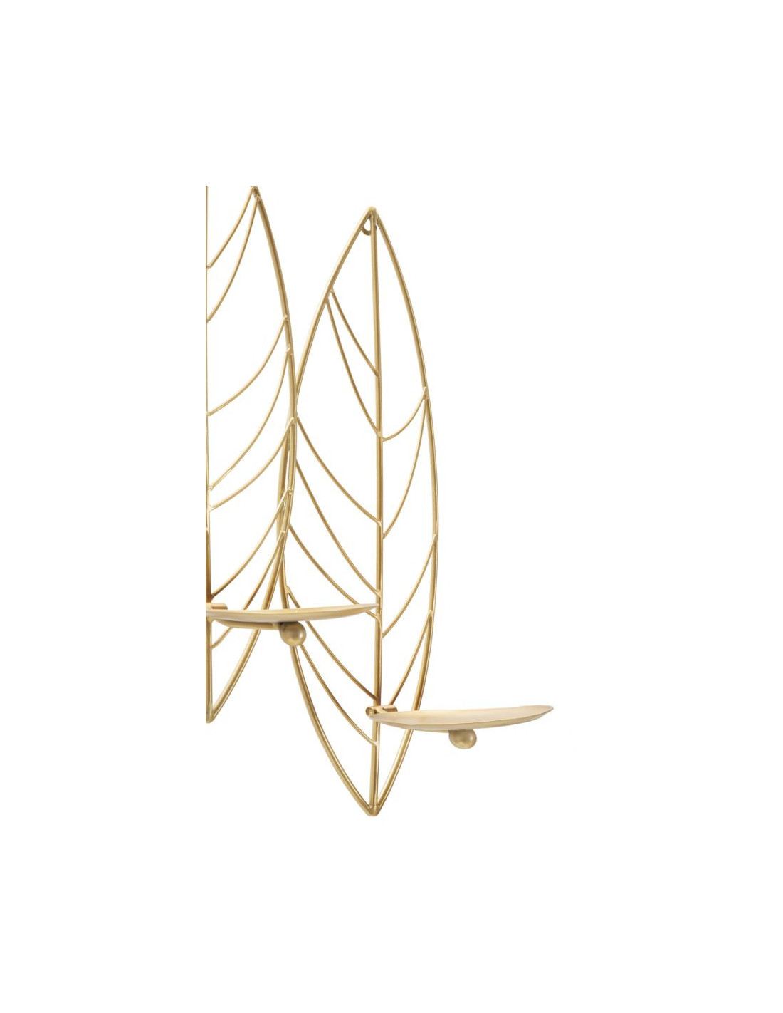 Grand Bougeoir mural design chic Feuilles 5 bougies Métal Doré Leaf 66 cm