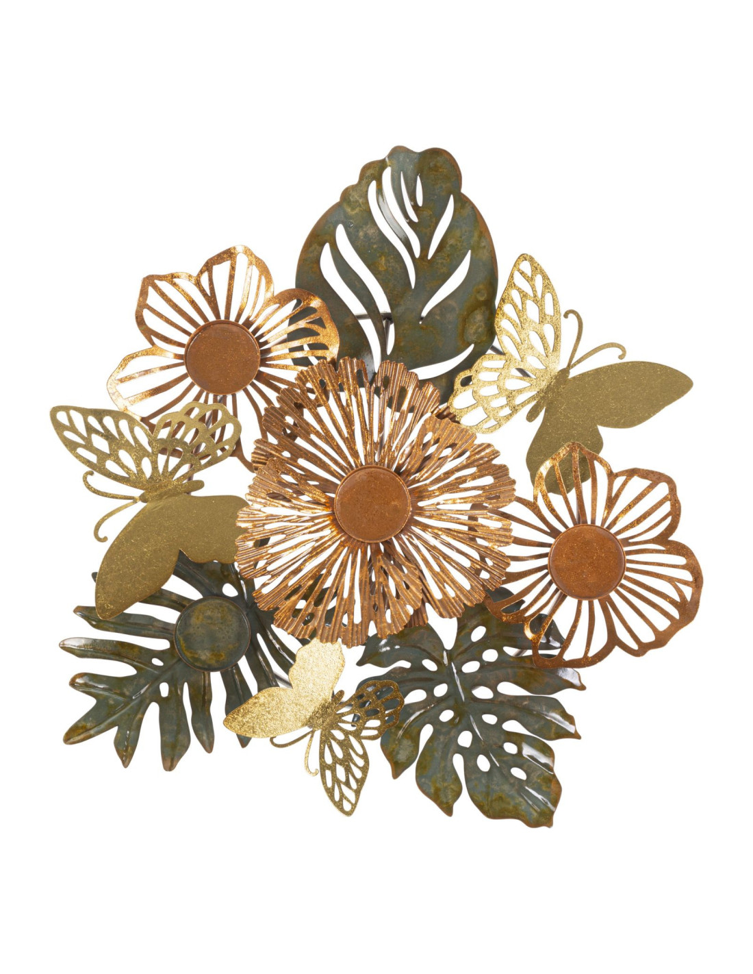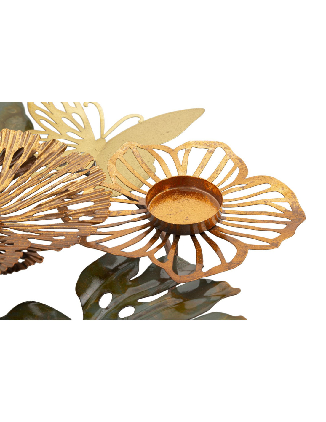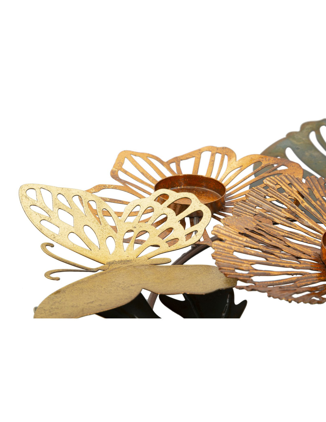 Grand Bougeoir original 3 bougies Papillons 45 cm en Métal Argenté Doré Cuivré Shine
