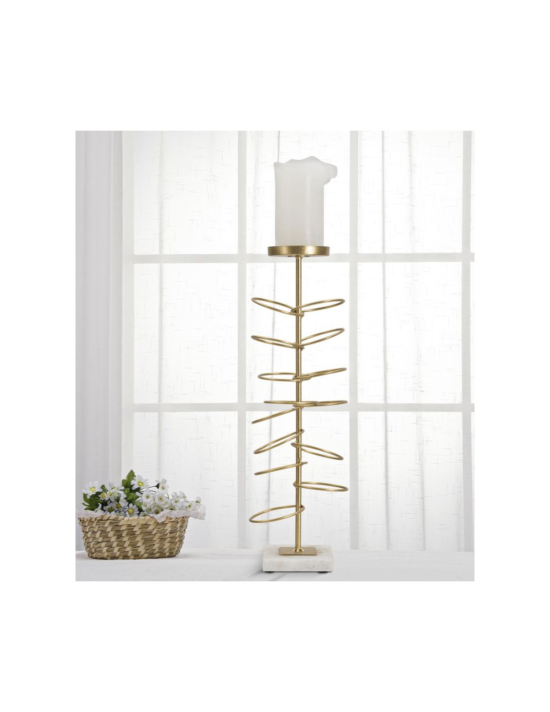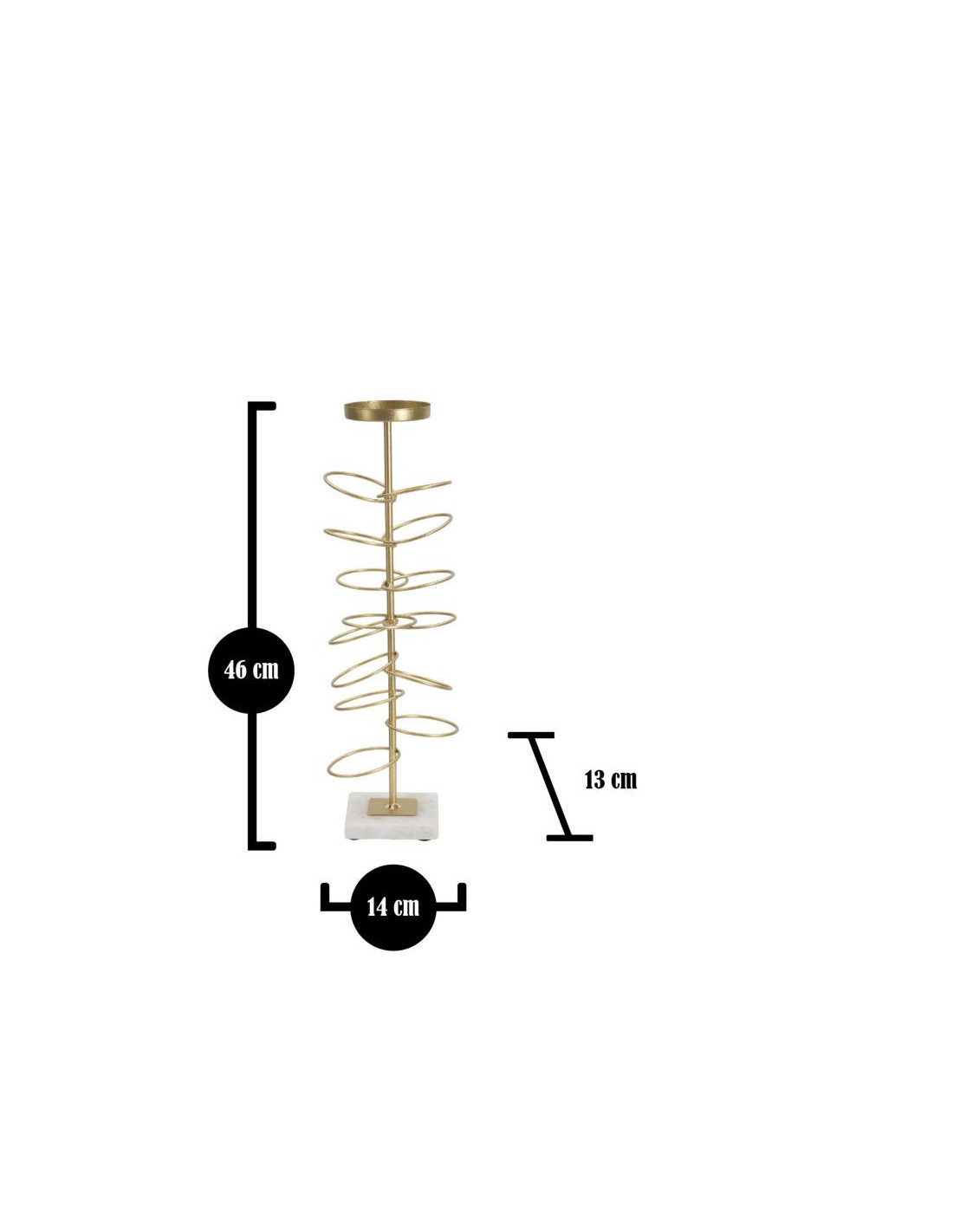 Grand bougeoir original Anneaux Hauteur 46 cm en Métal Doré Marbre Blanc Ring