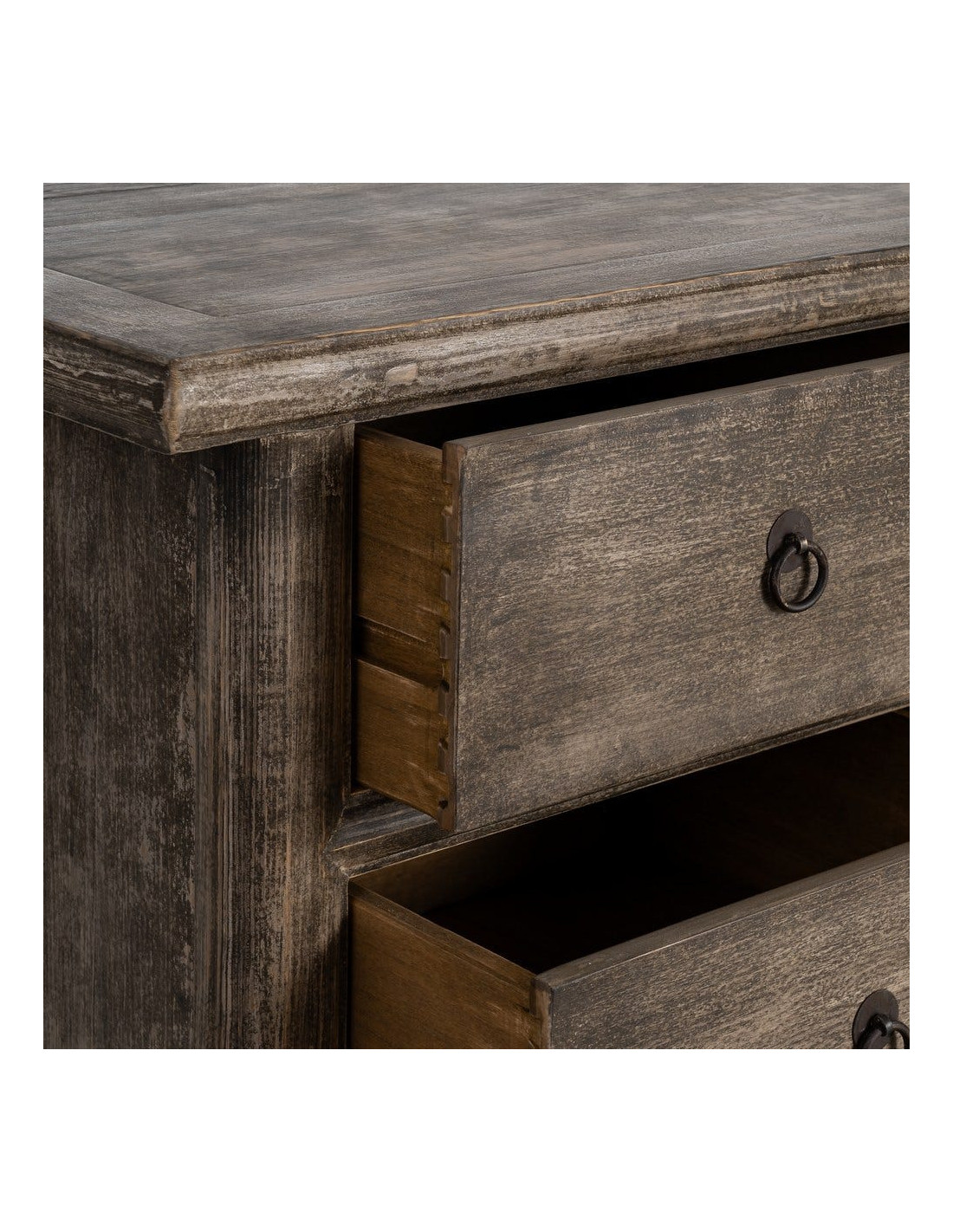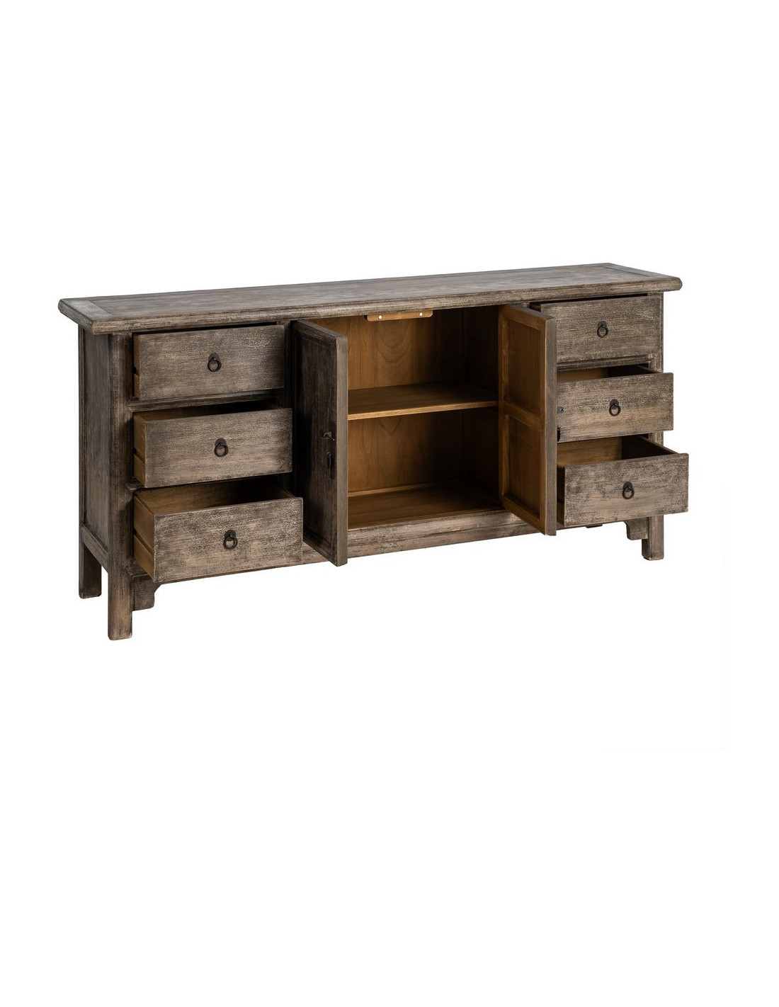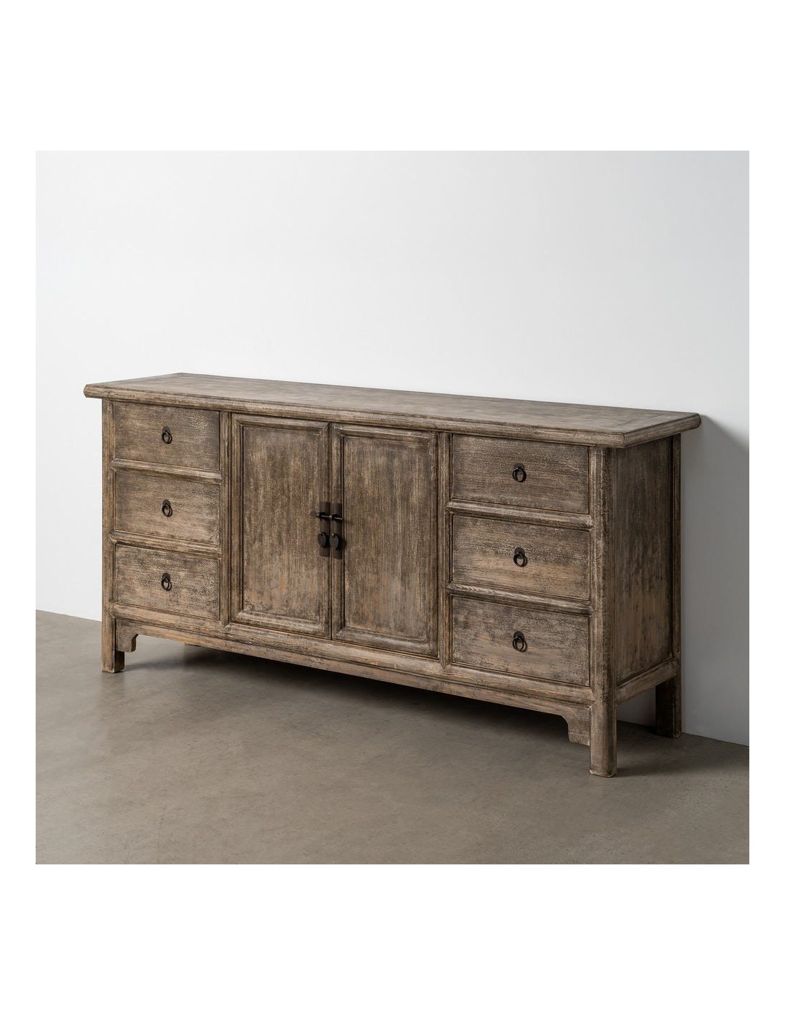 Grand Buffet design campagne chic Bas 2 portes 6 tiroirs 180 cm Bois de pin recyclé Marron Vieilli Héritia