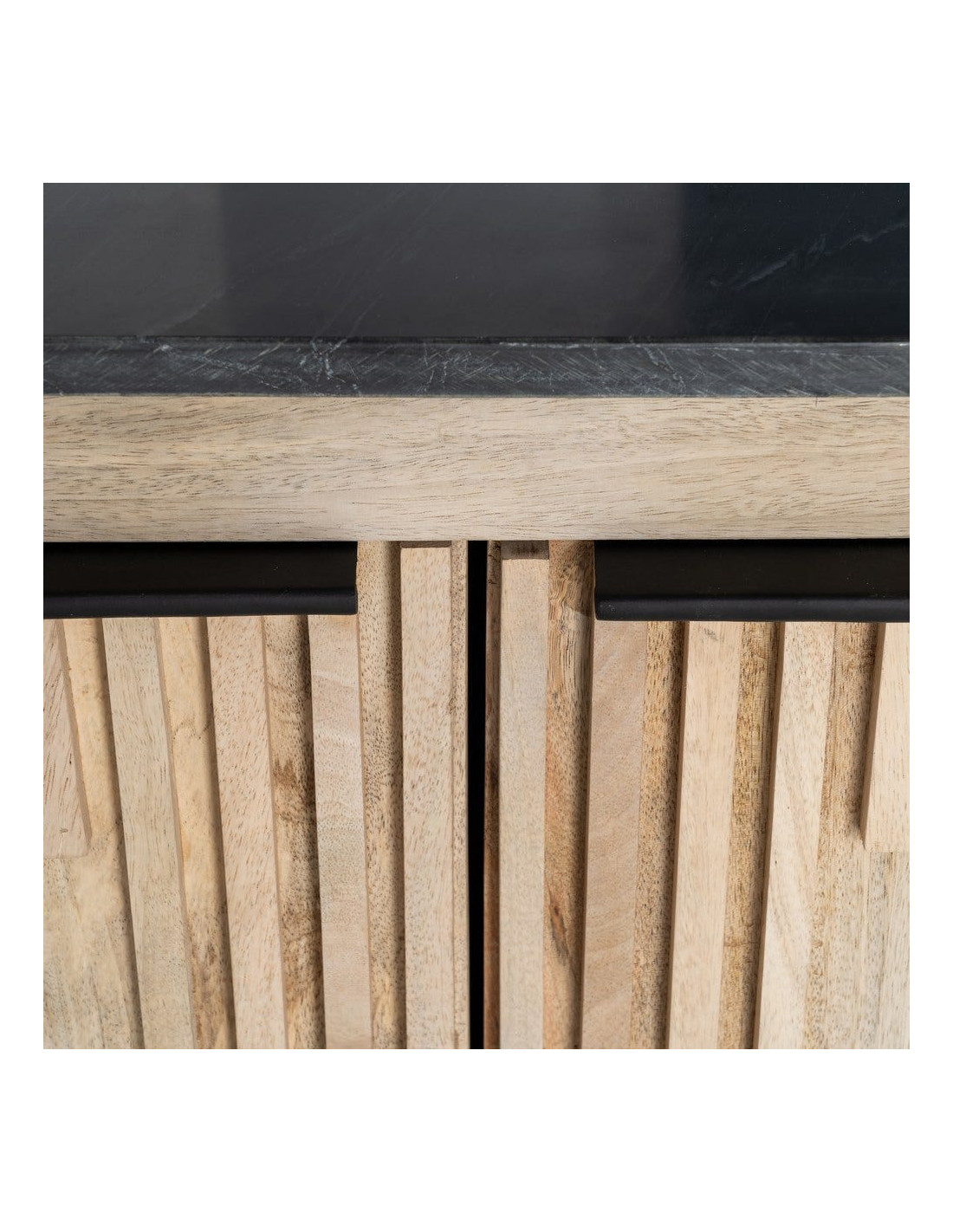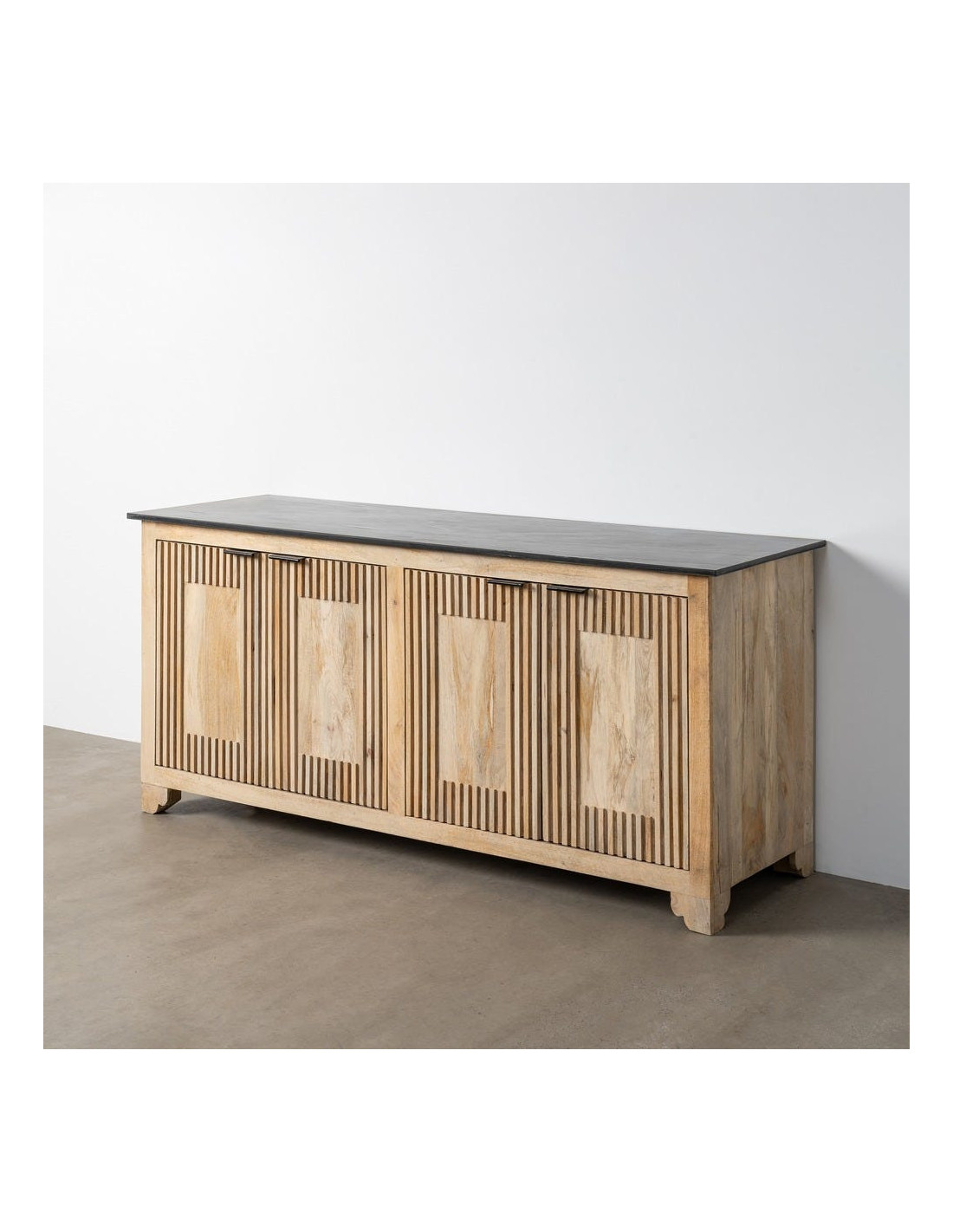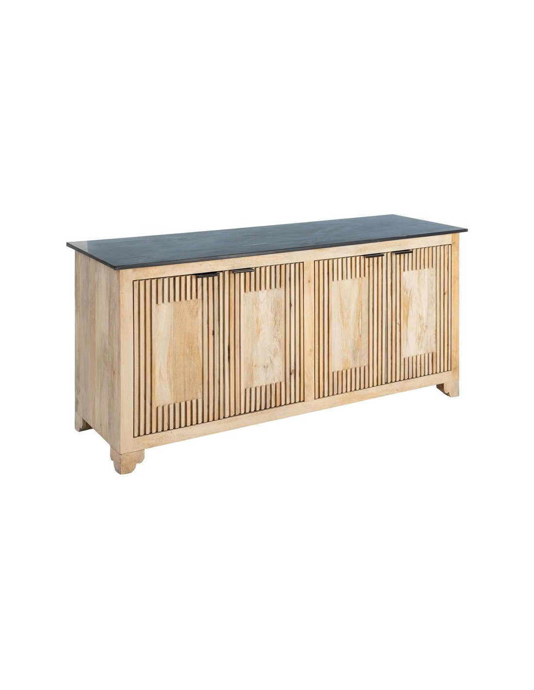 Grand Buffet Enfilade Japandi chic Bas 4 portes Marbre Noir Bois de manguier Naturel Natsuvik