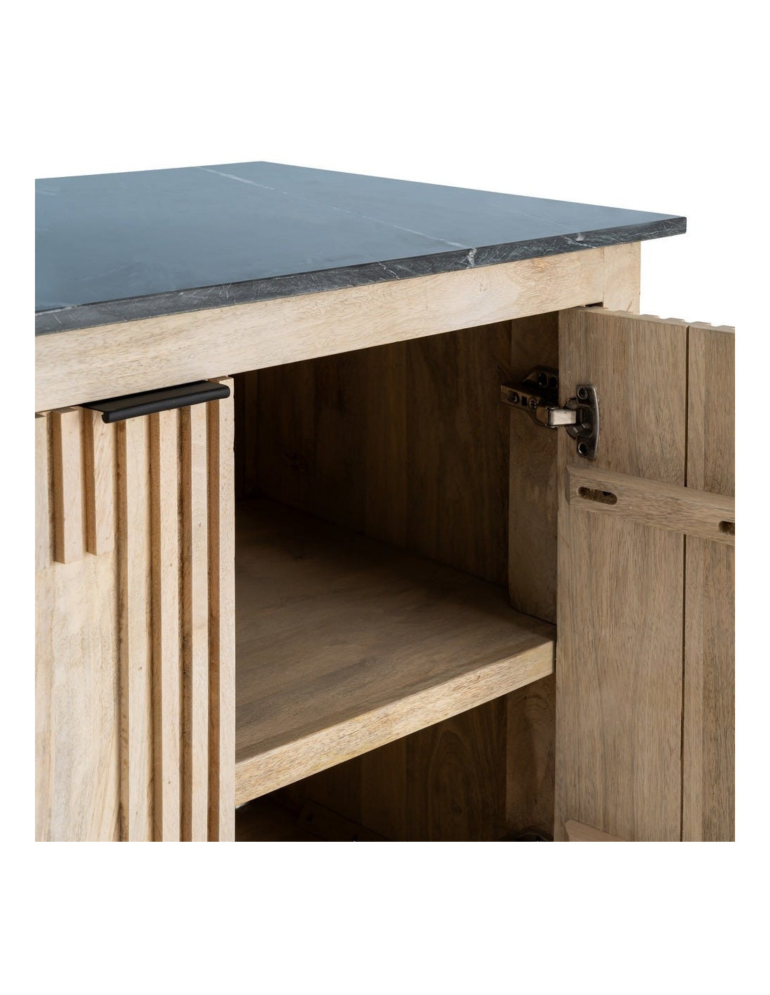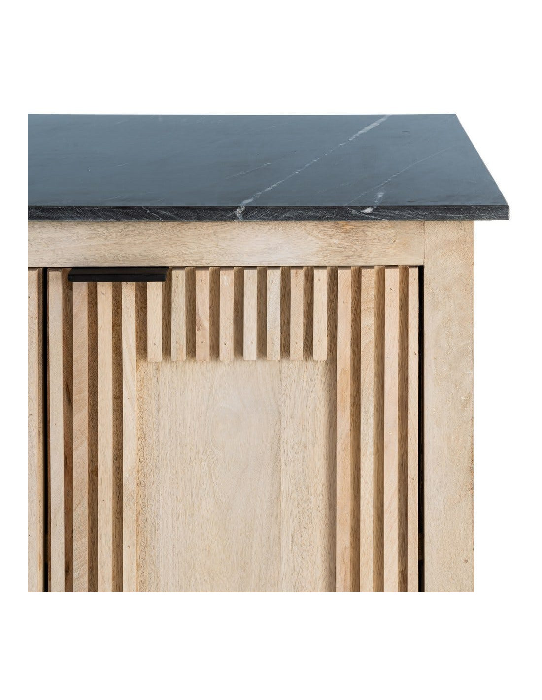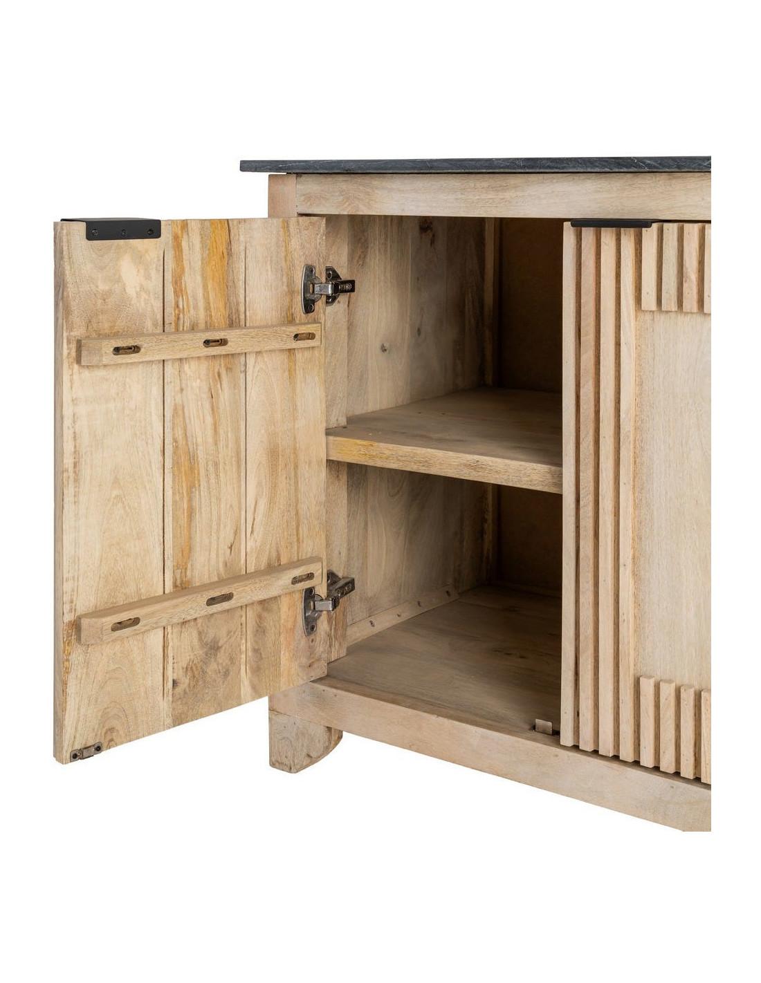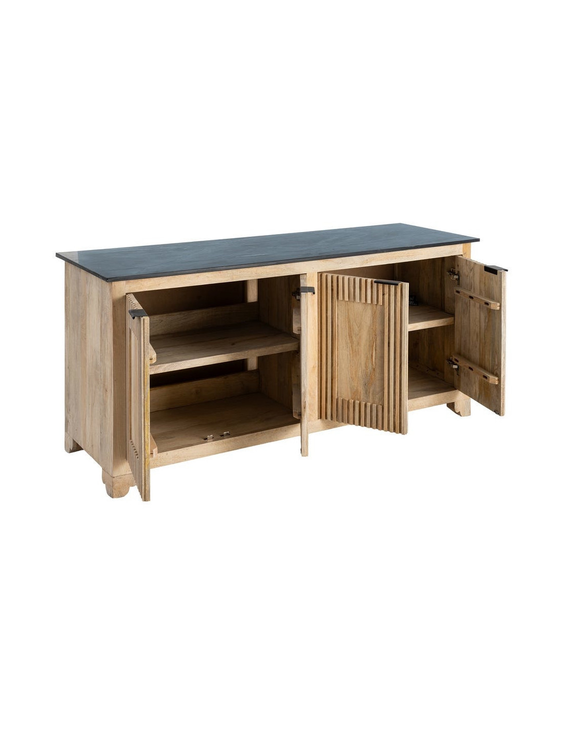 Grand Buffet Enfilade Japandi chic Bas 4 portes Marbre Noir Bois de manguier Naturel Natsuvik
