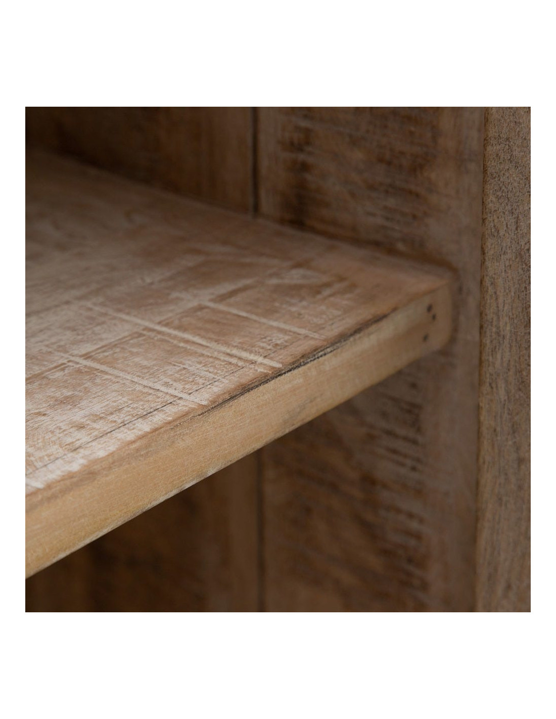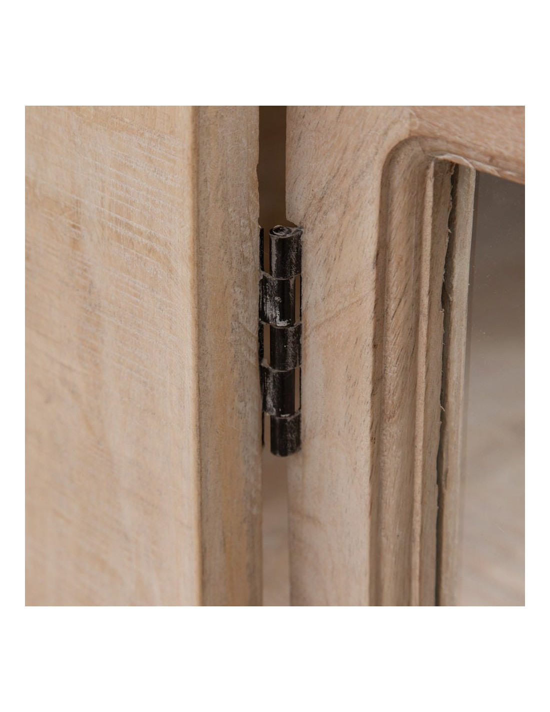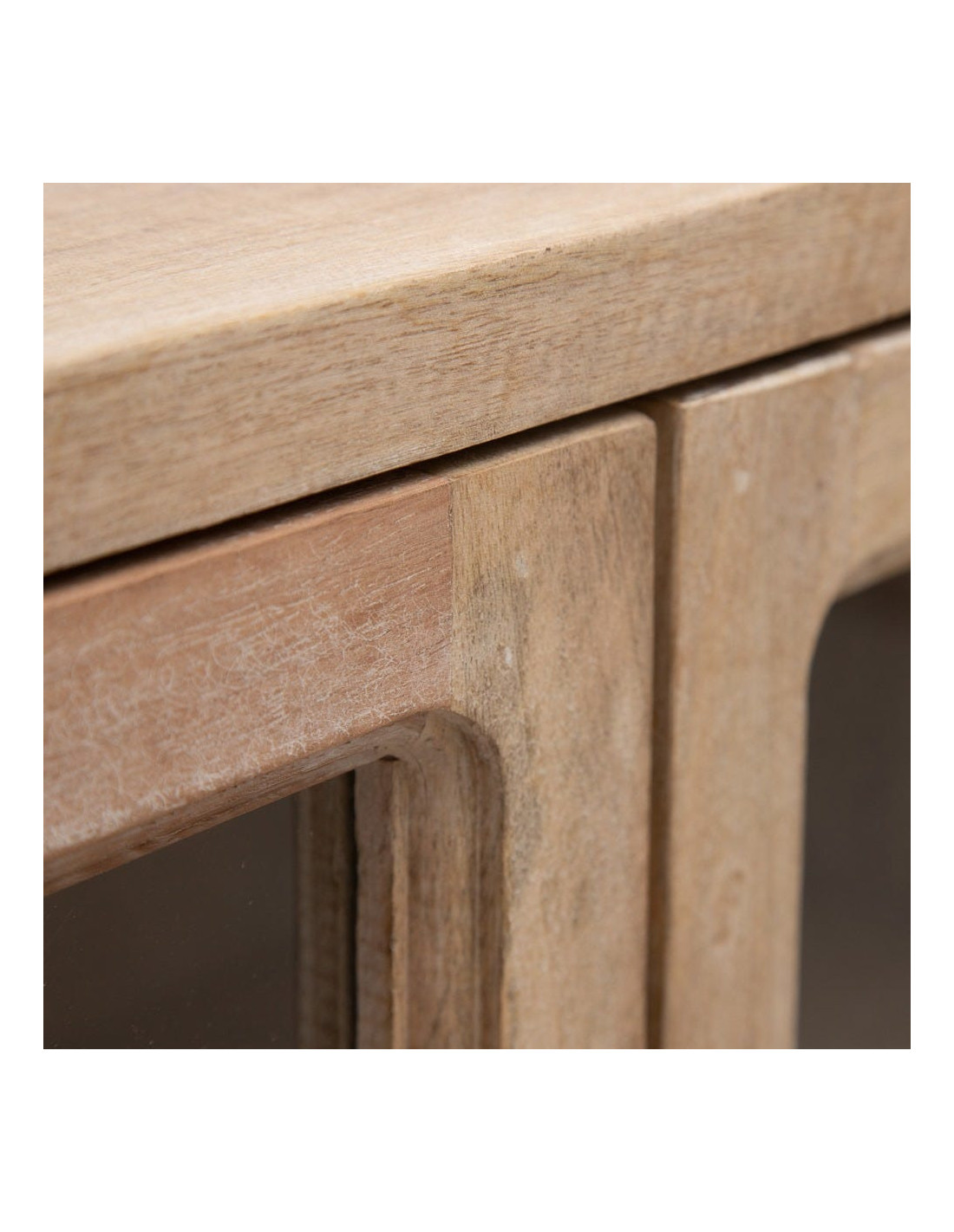Grand Buffet Enfilade moderne Bas 4 portes en Bois de manguier Naturel Blanchi Verre Transparent Saimon - 3