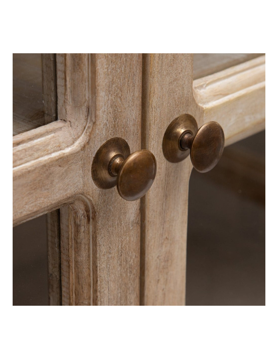 Grand Buffet Enfilade moderne Bas 4 portes en Bois de manguier Naturel Blanchi Verre Transparent Saimon - 8