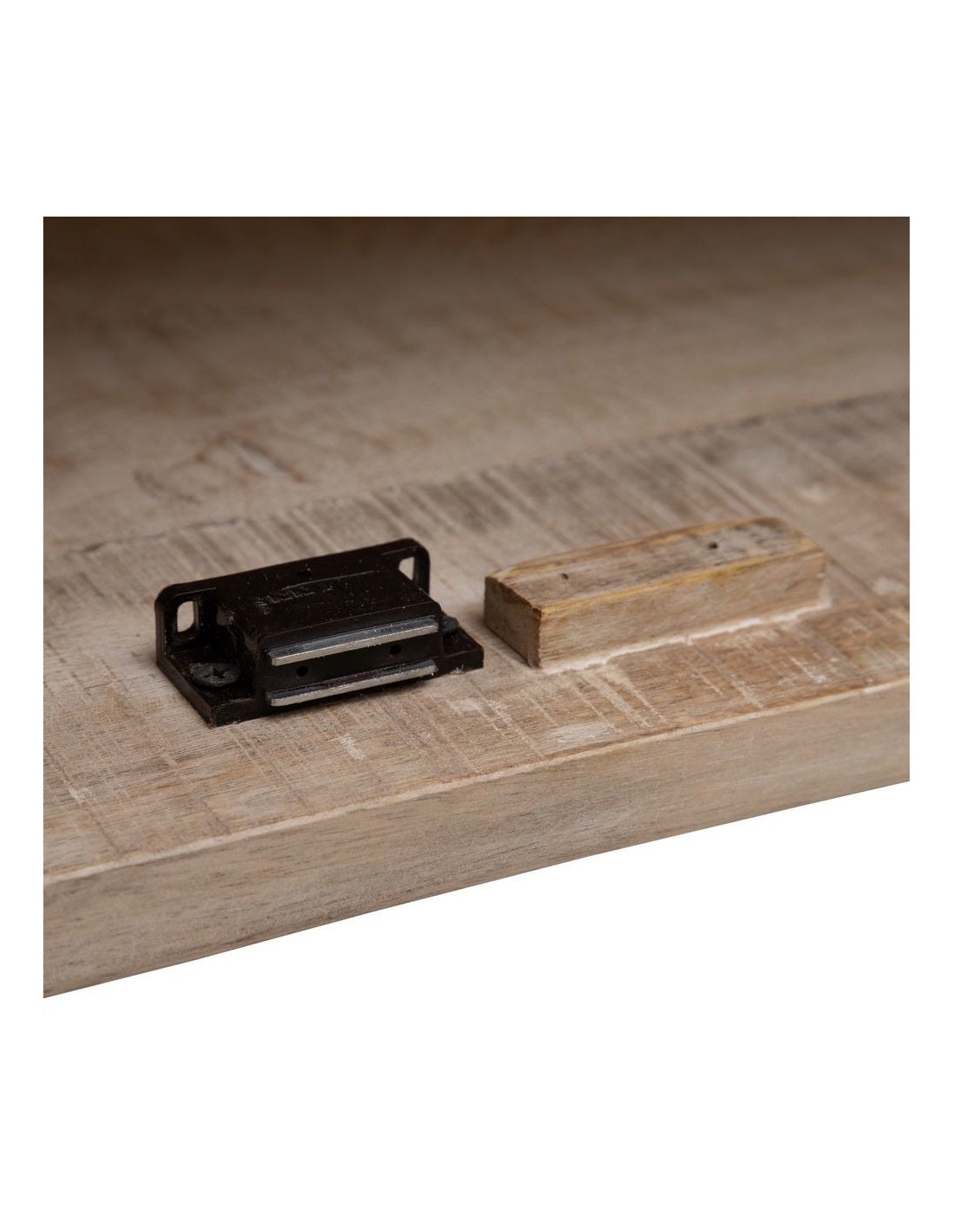 Grand Buffet Enfilade moderne Bas 4 portes en Bois de manguier Naturel Blanchi Verre Transparent Saimon - 10