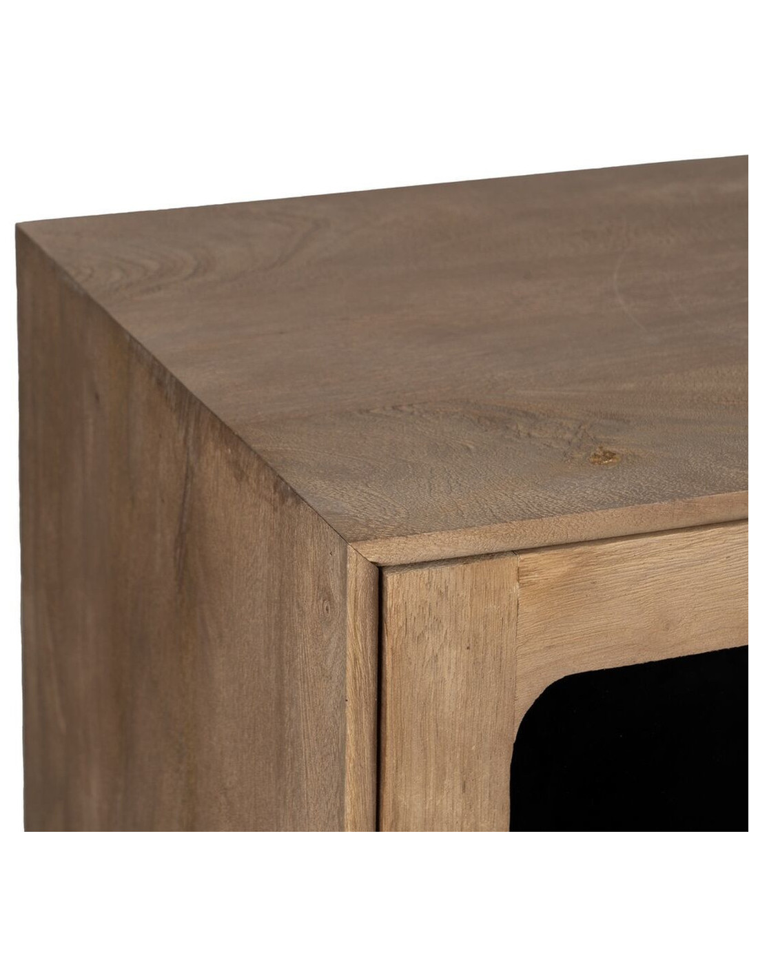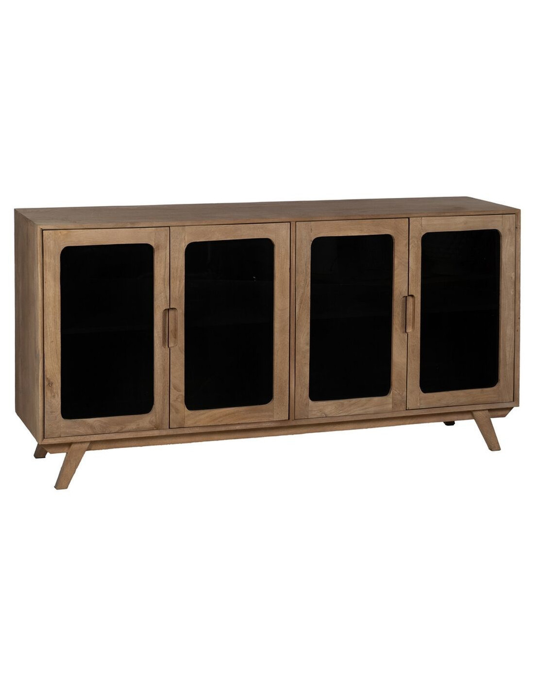Grand Buffet enfilade moderne Bas 4 portes en Bois de manguier Naturel Verre Noir Semi transparent Burnie - 1