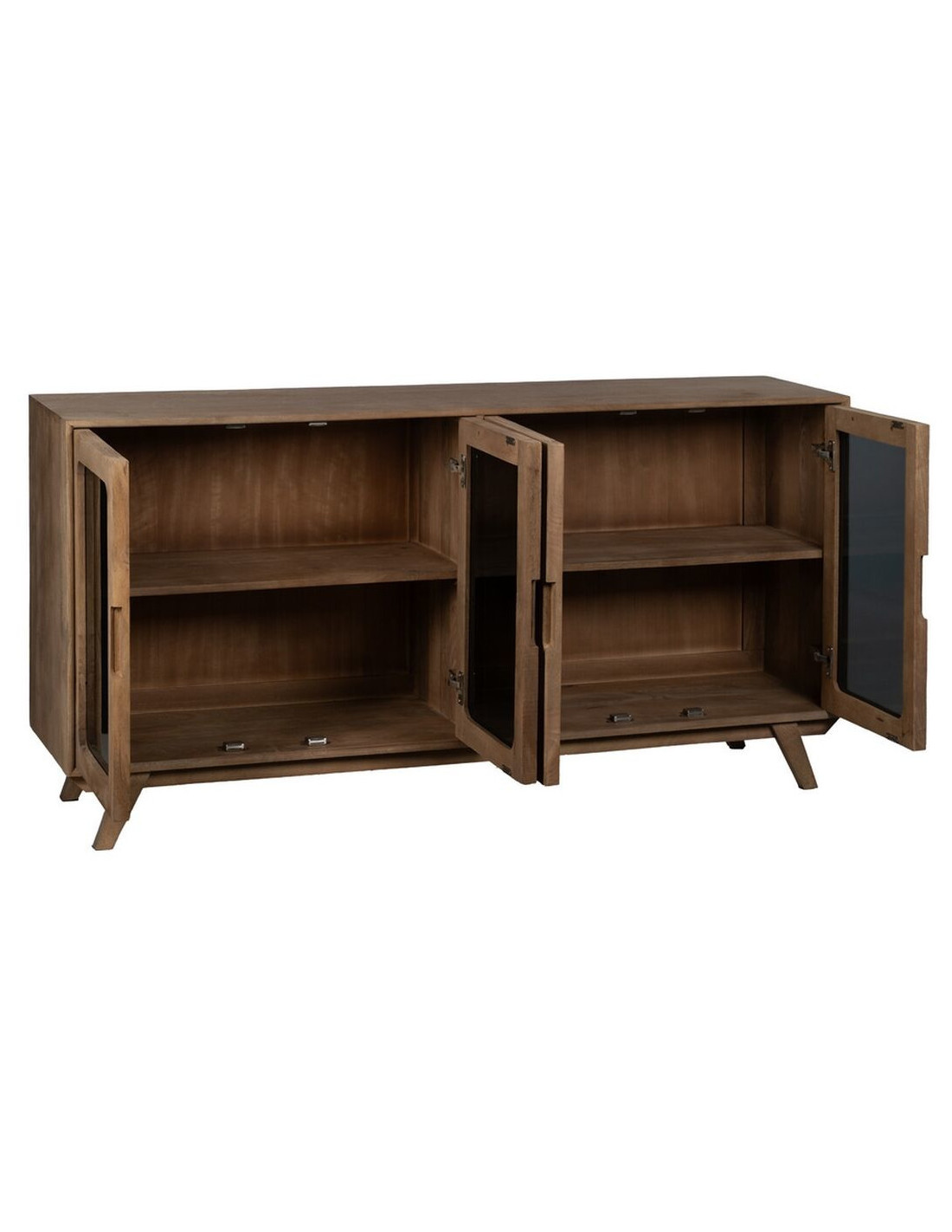 Grand Buffet enfilade moderne Bas 4 portes en Bois de manguier Naturel Verre Noir Semi transparent Burnie