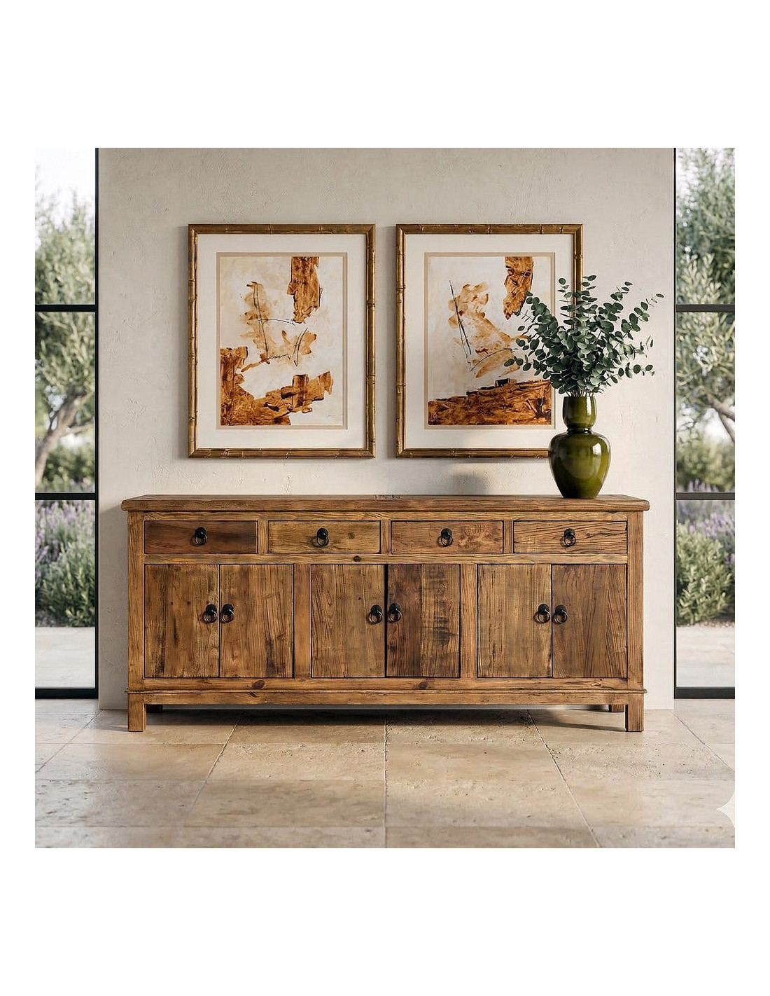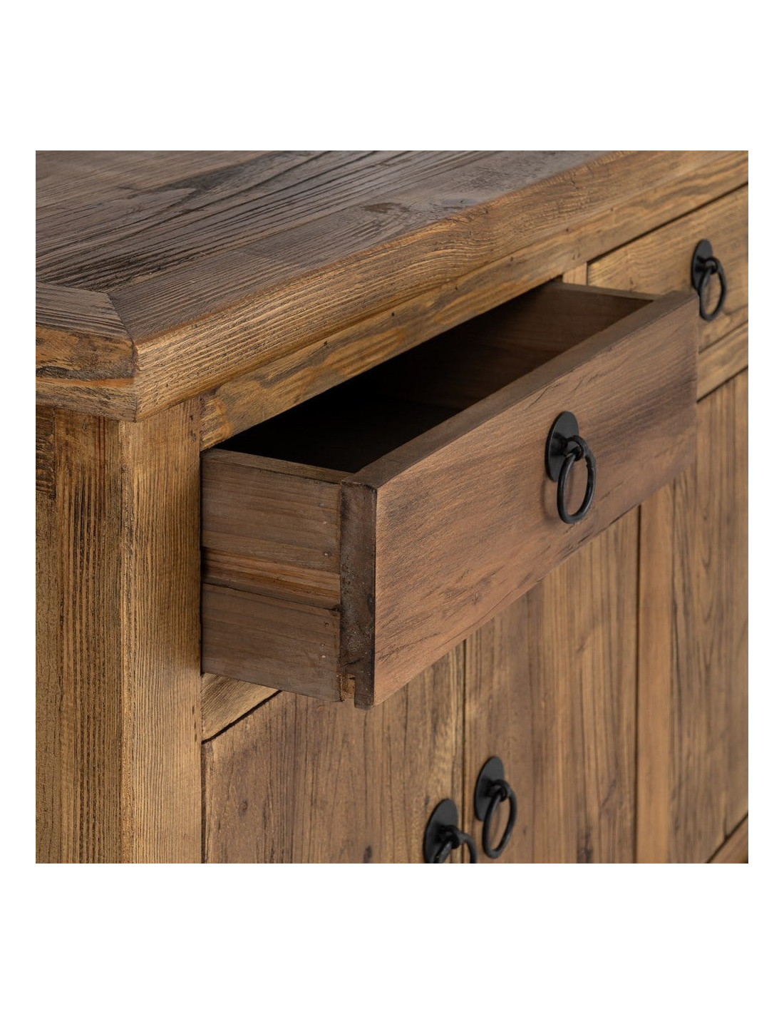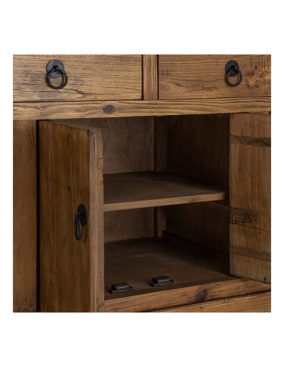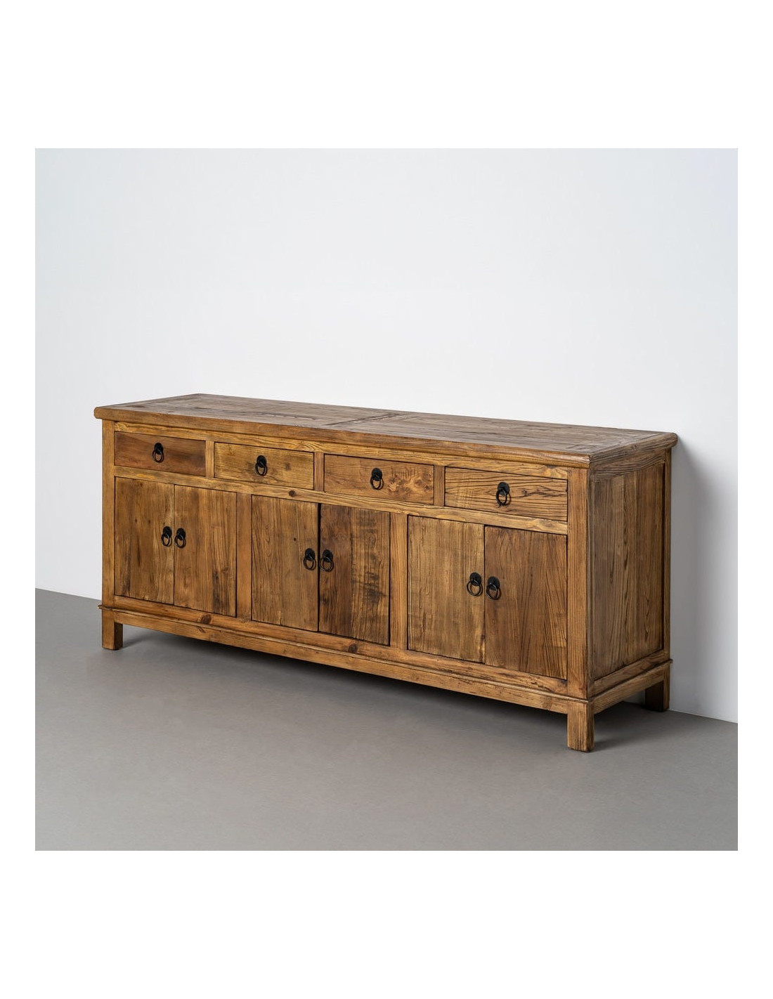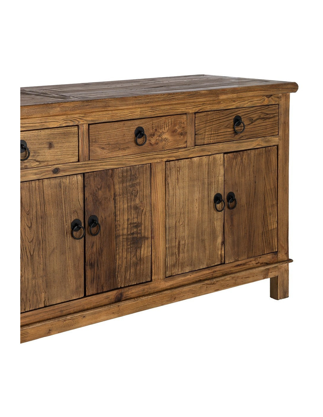 Grand Buffet Enfilade rustique chic Bas 6 portes 4 tiroirs Bois recyclé Marron Valdorio