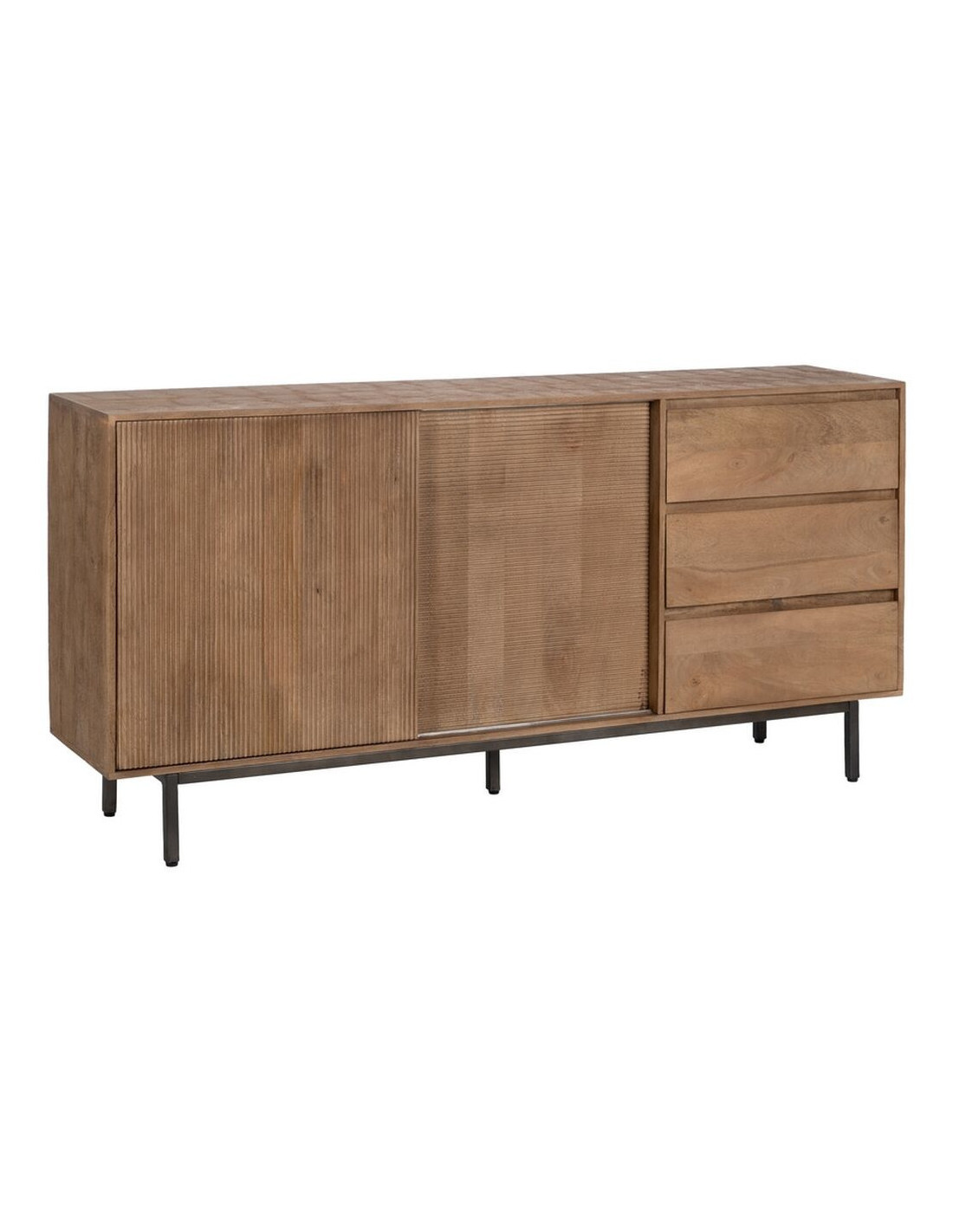 Grand Buffet haut de gamme Bas 2 portes 3 tiroirs en Bois de manguier Naturel Nyfira