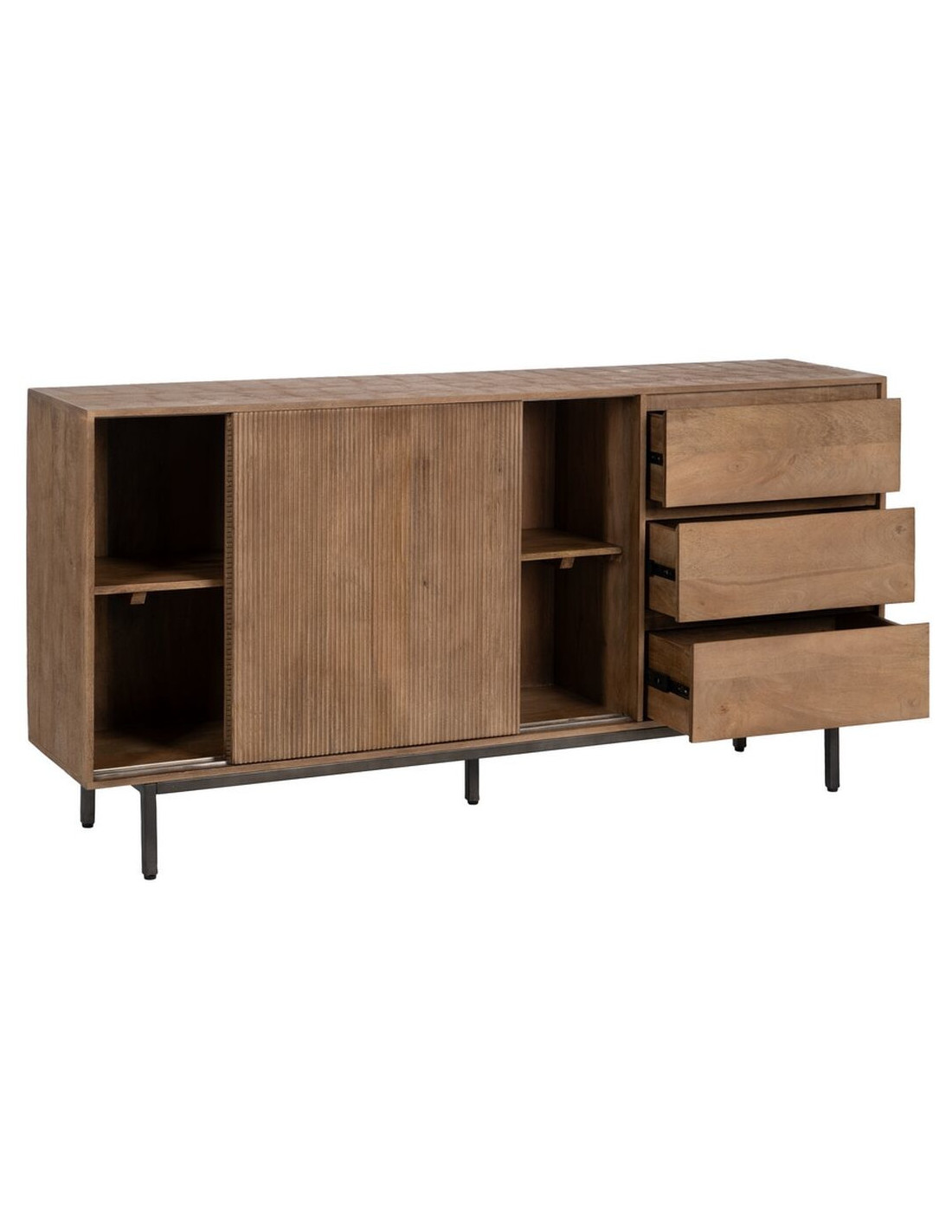 Grand Buffet haut de gamme Bas 2 portes 3 tiroirs en Bois de manguier Naturel Nyfira - 1