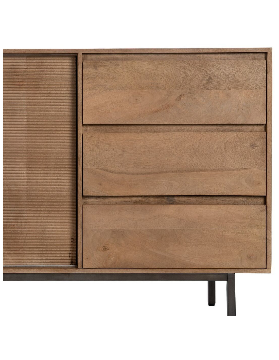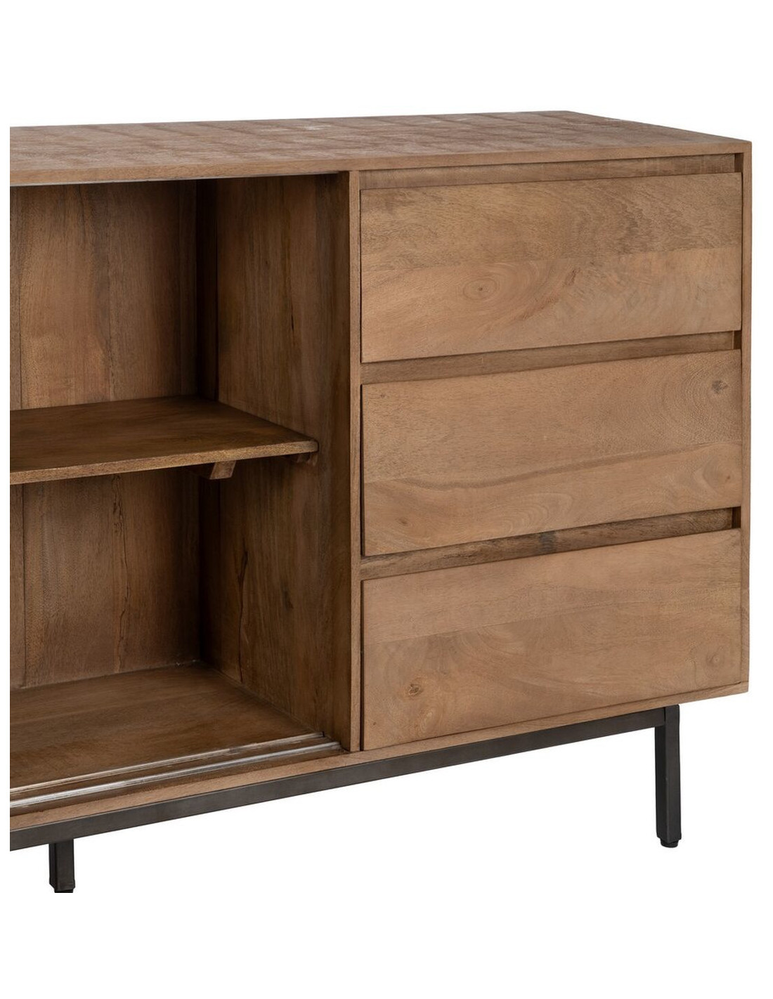 Grand Buffet haut de gamme Bas 2 portes 3 tiroirs en Bois de manguier Naturel Nyfira - 7