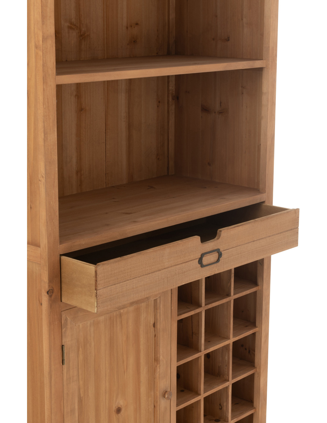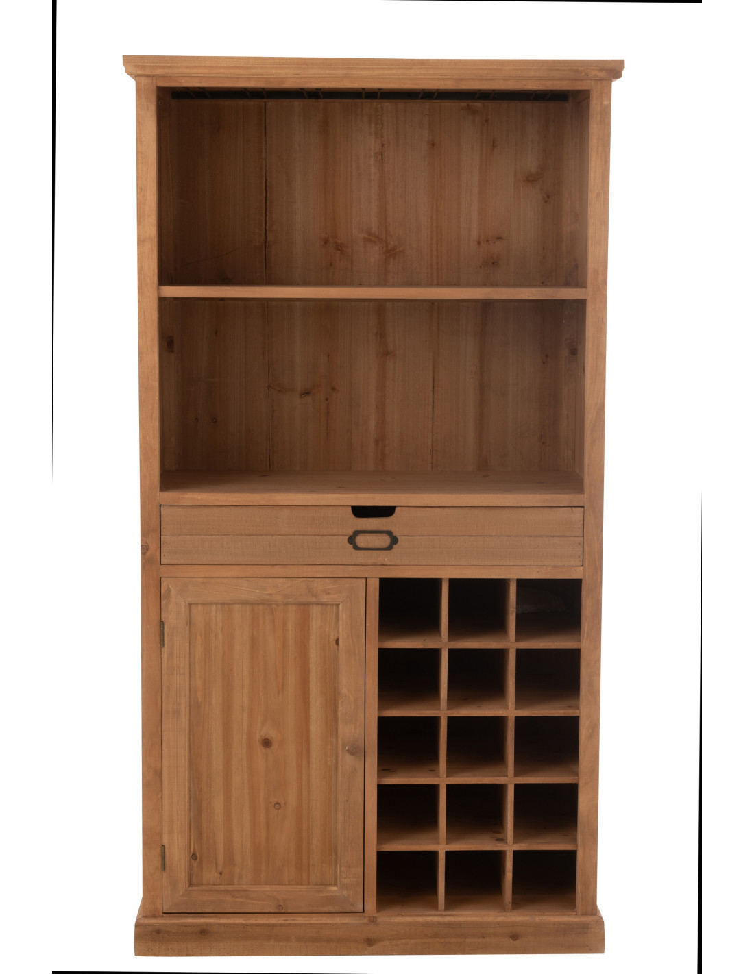 Grand Buffet industriel chic Haut 1 porte 1 tiroir 2 étagères 15 range-bouteilles en Bois MDF Naturel Verre Transparent Métal No