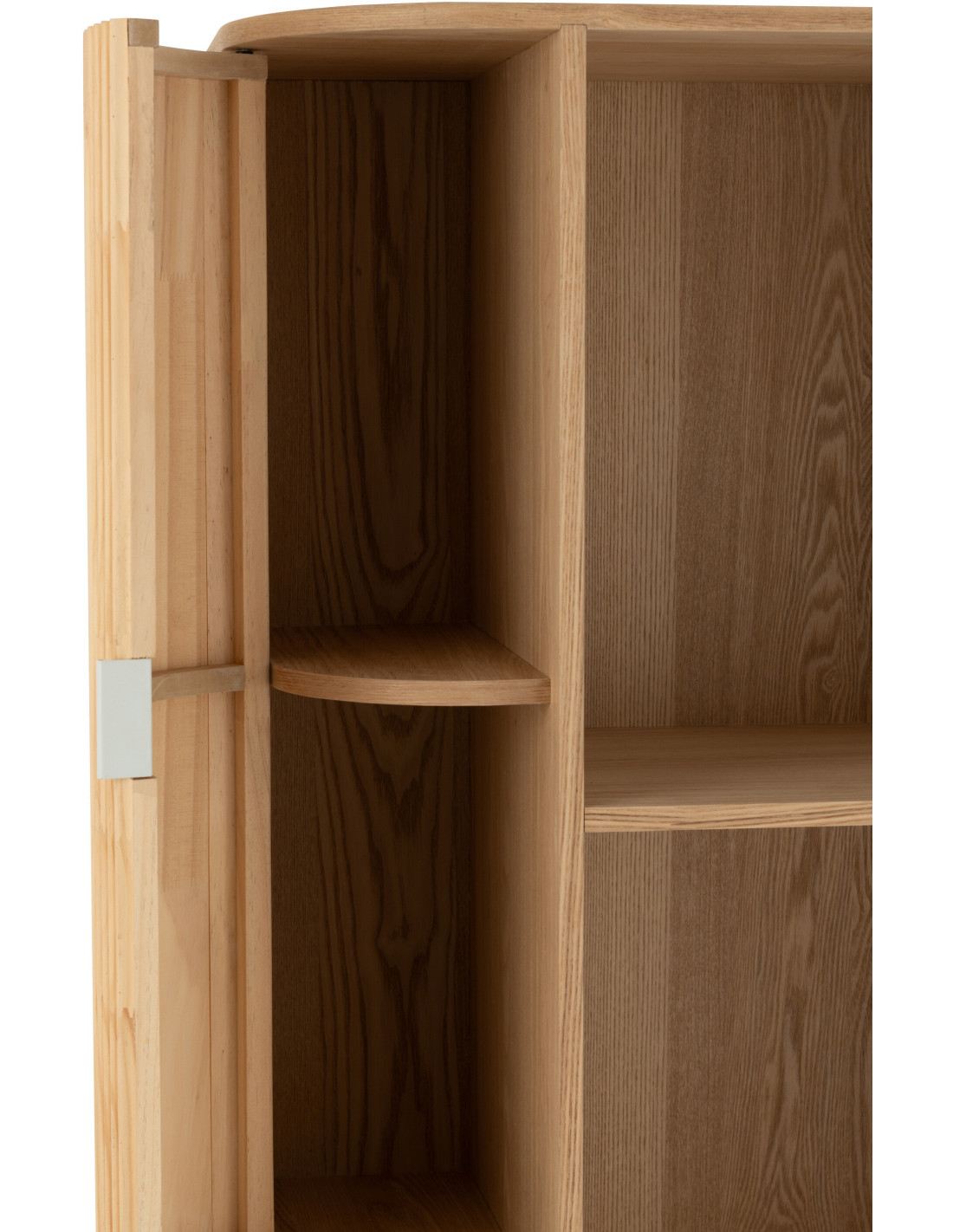 Grand Buffet japandi arrondi 4 portes 1 tiroirs 3 étagères en Bois de pin Naturel Kaori