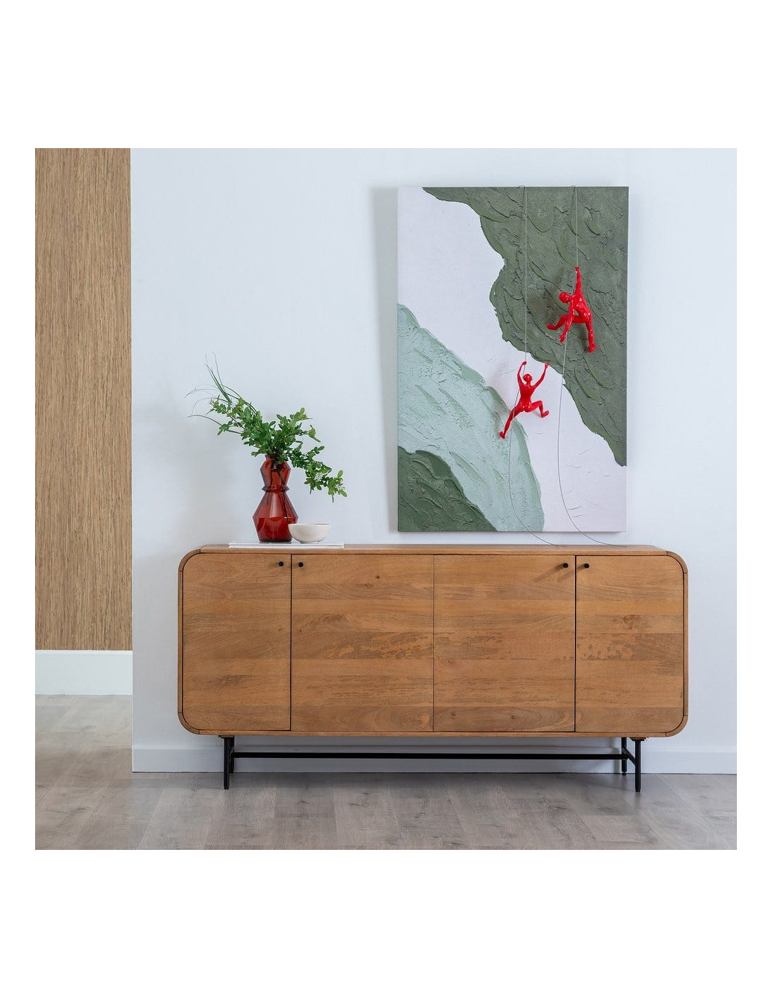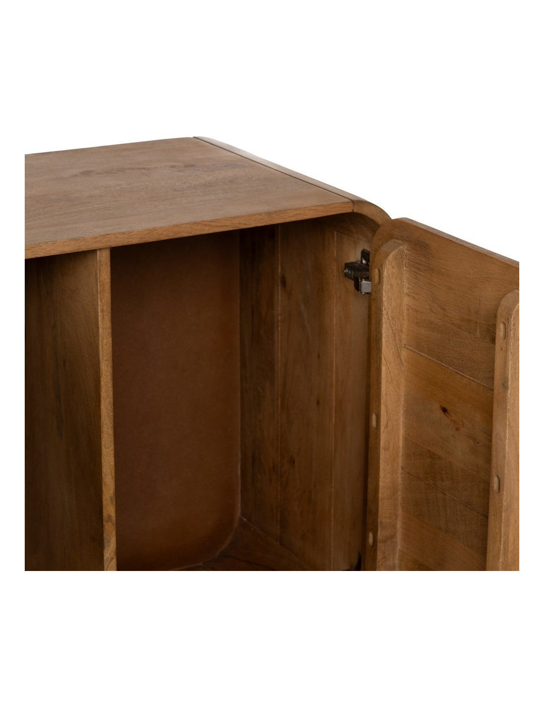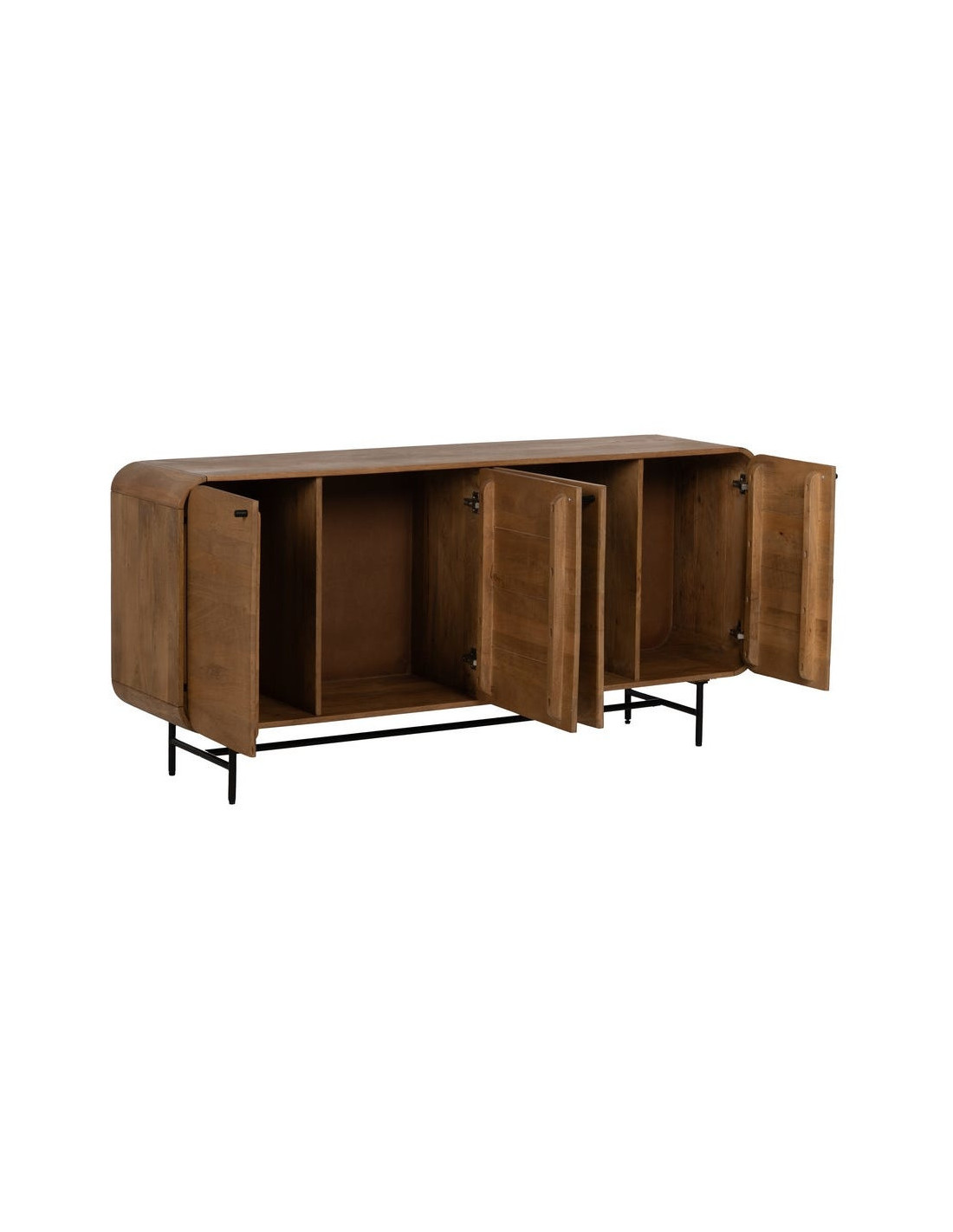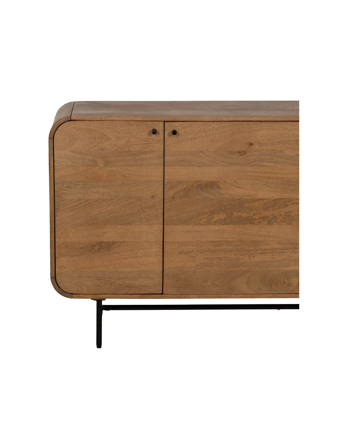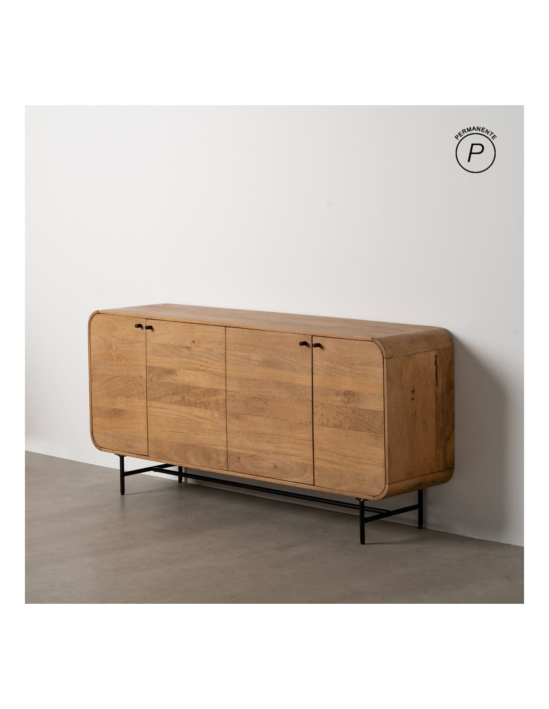 Un meuble de rangement qui impose une vraie présence. Mahon associe la chaleur du bois de manguier à une structure métal pour créer un buffet bas à la fois robuste et visuellement impactant.