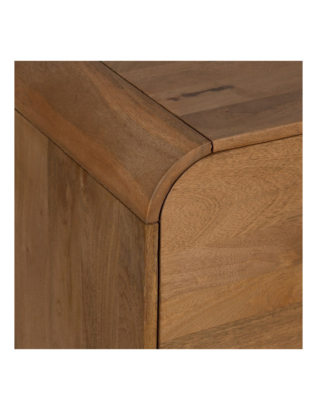 Le bois de manguier apporte chaleur et authenticité grâce à ses nuances naturelles, tandis que le métal vient encadrer l’ensemble avec une ligne plus contemporaine.