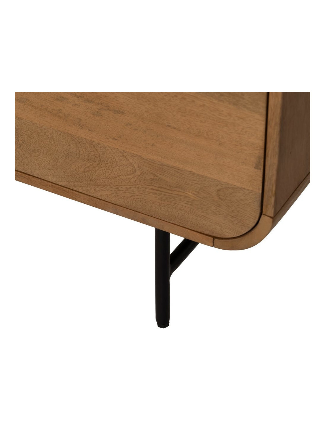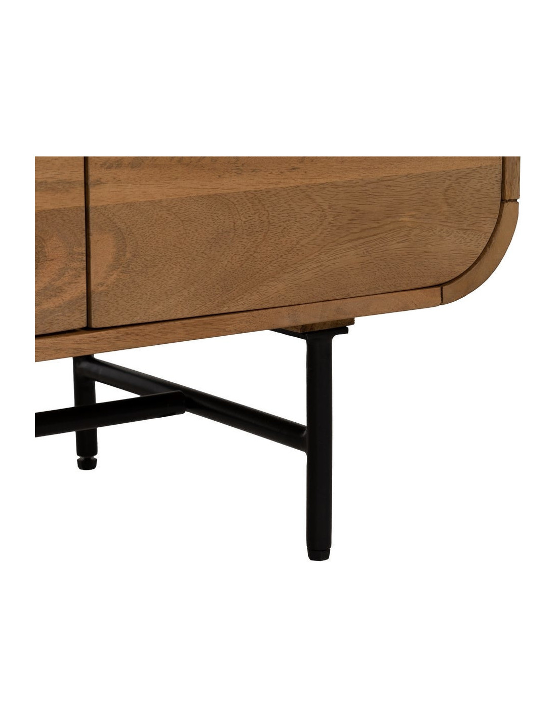 Le bois de manguier est une matière naturelle pouvant présenter des variations de teinte et de veinage. La structure en métal renforce la stabilité et la durabilité du meuble.