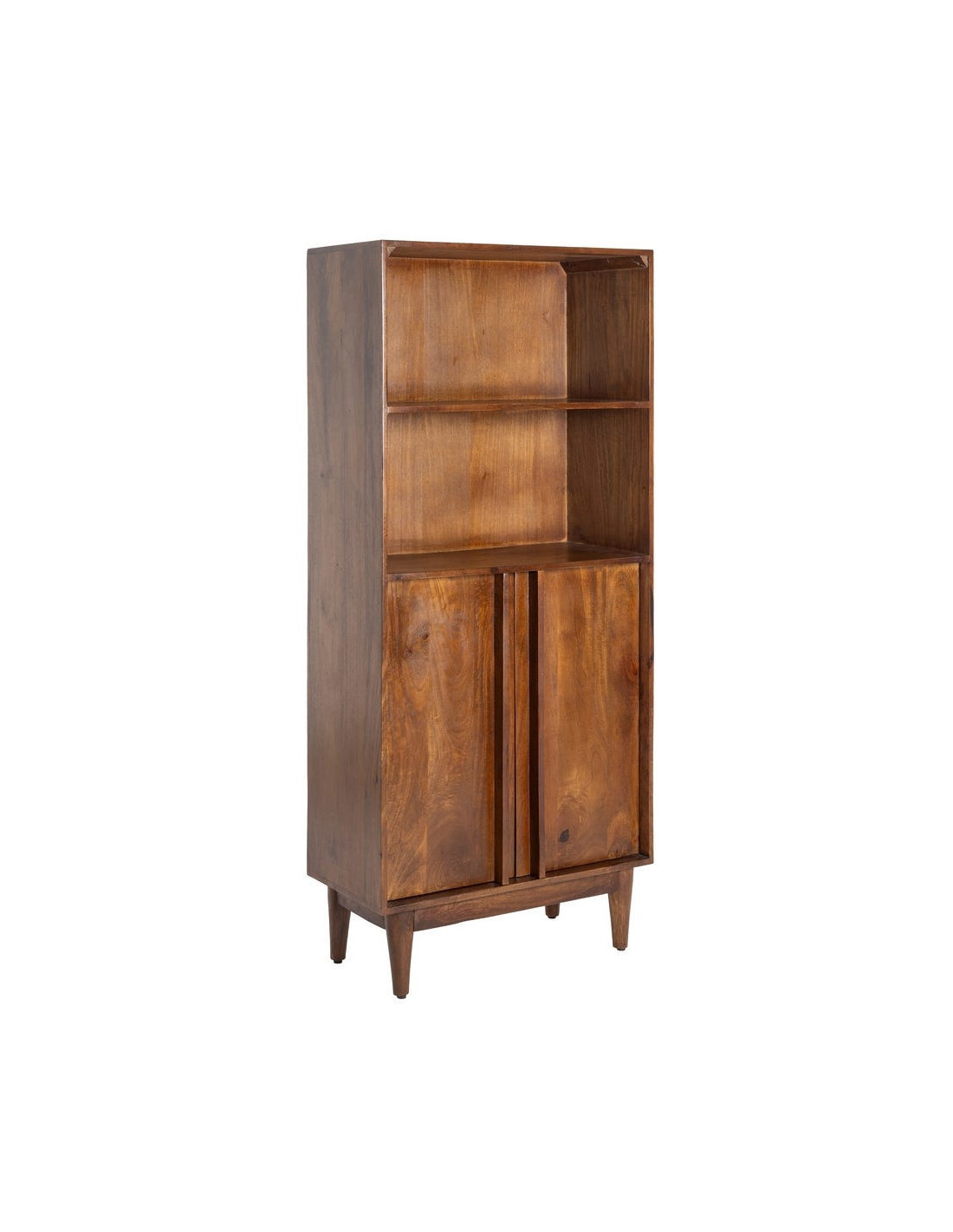 Grand Buffet mid-century moderne Haut 2 portes 2 étagères en Bois de manguier Marron Garrel