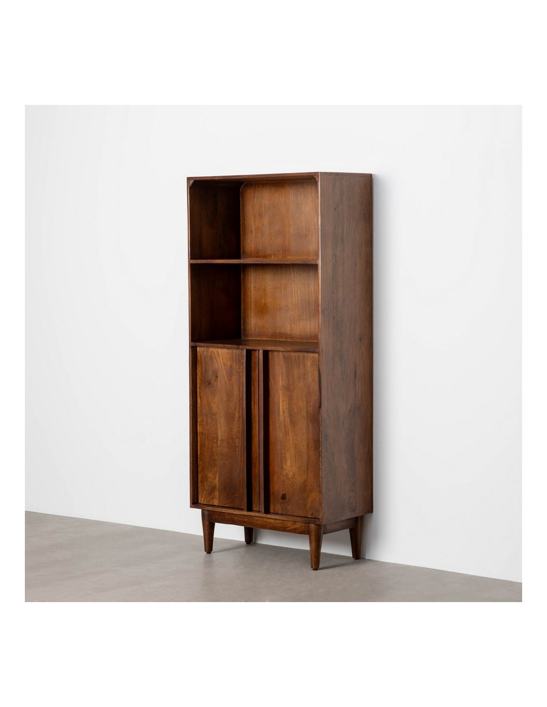 Grand Buffet mid-century moderne Haut 2 portes 2 étagères en Bois de manguier Marron Garrel - 1