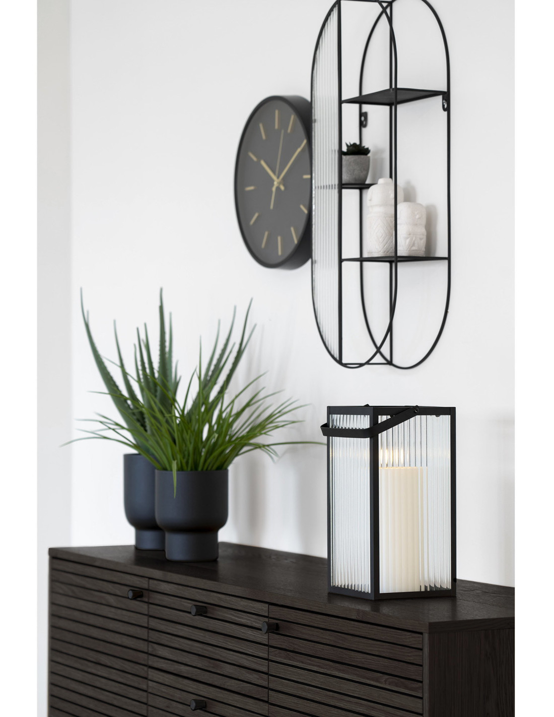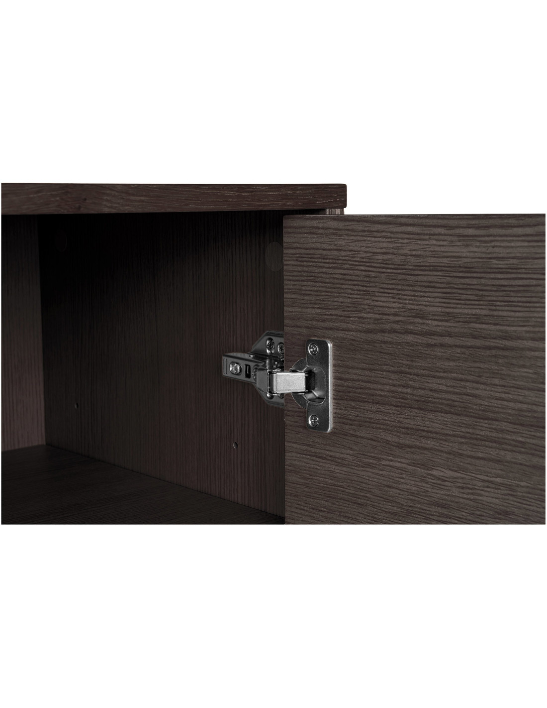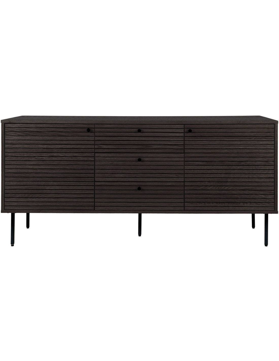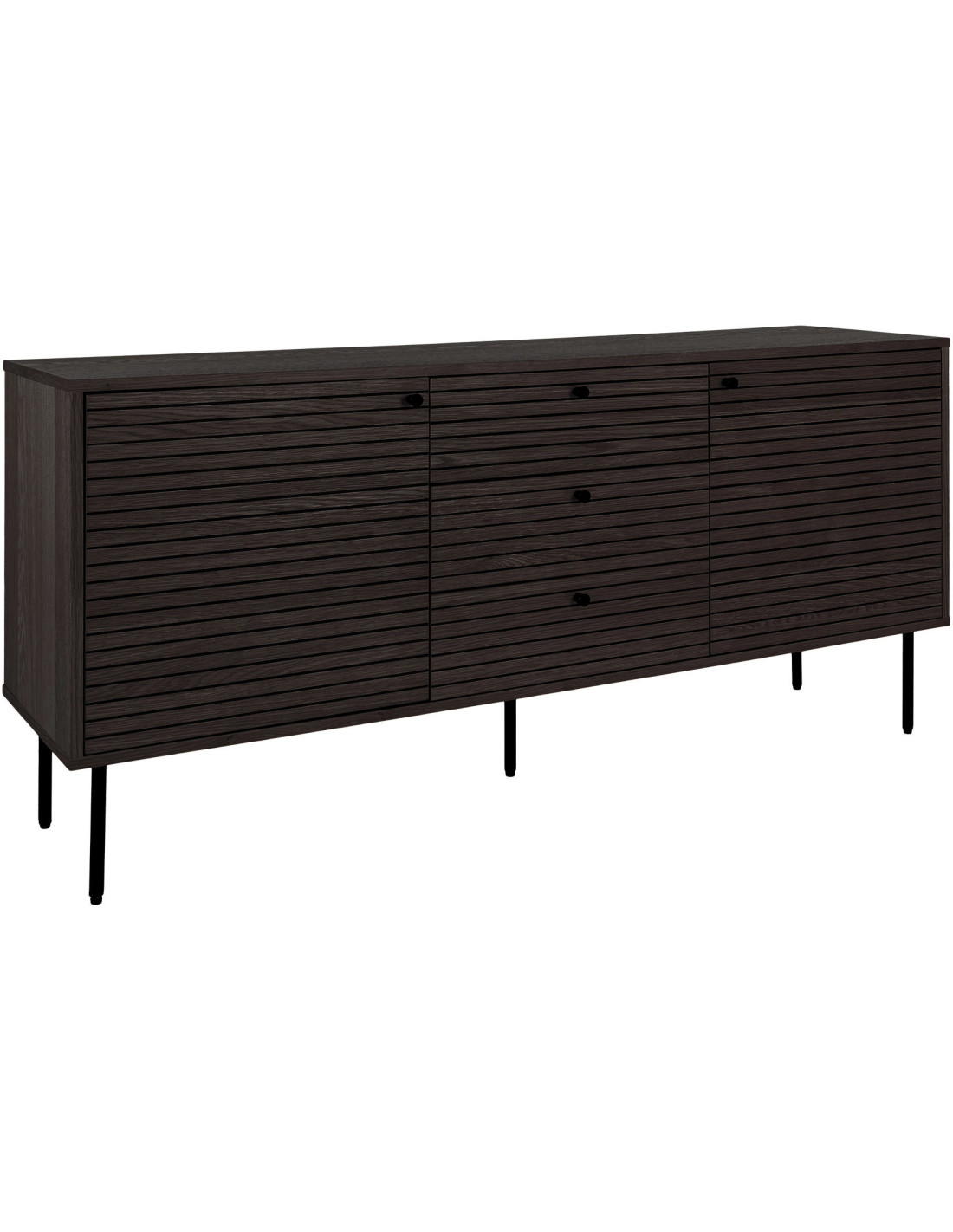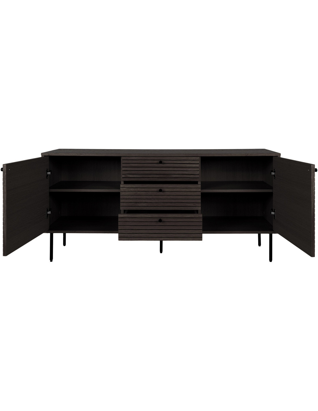 Grand Buffet moderne Bas 2 portes 3 tiroirs Bois MDF Marron Effet chêne fumé Feuille de mélamine Métal Noir Kyoto