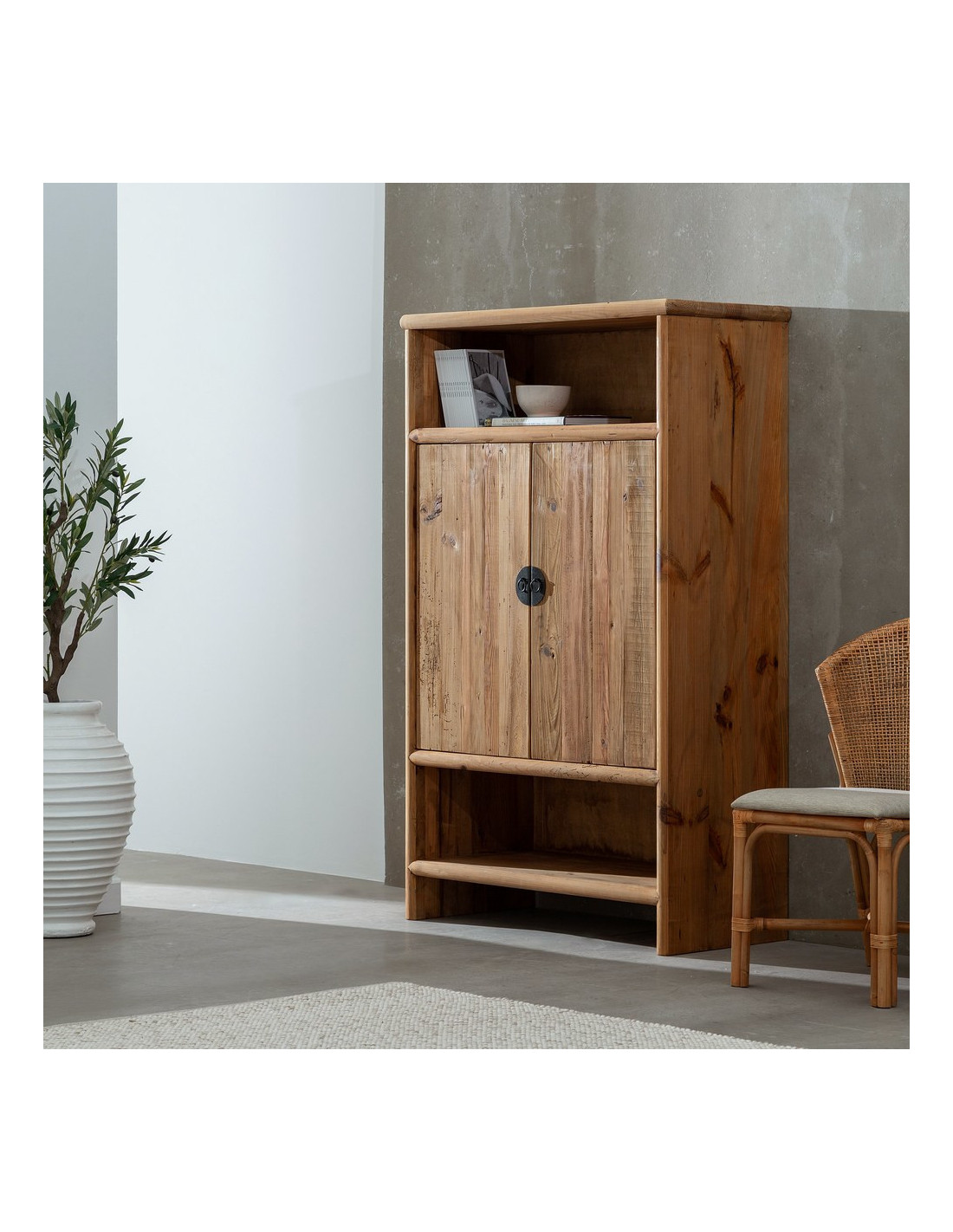 Grand Buffet oriental Haut 2 portes 2 niches en Bois de pin recyclé Naturel Naturel Zayd