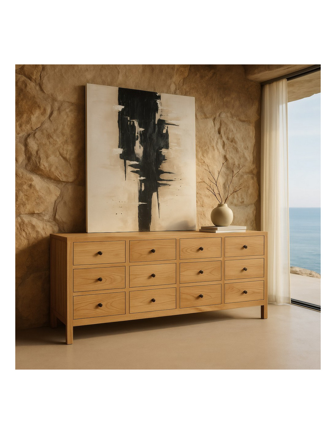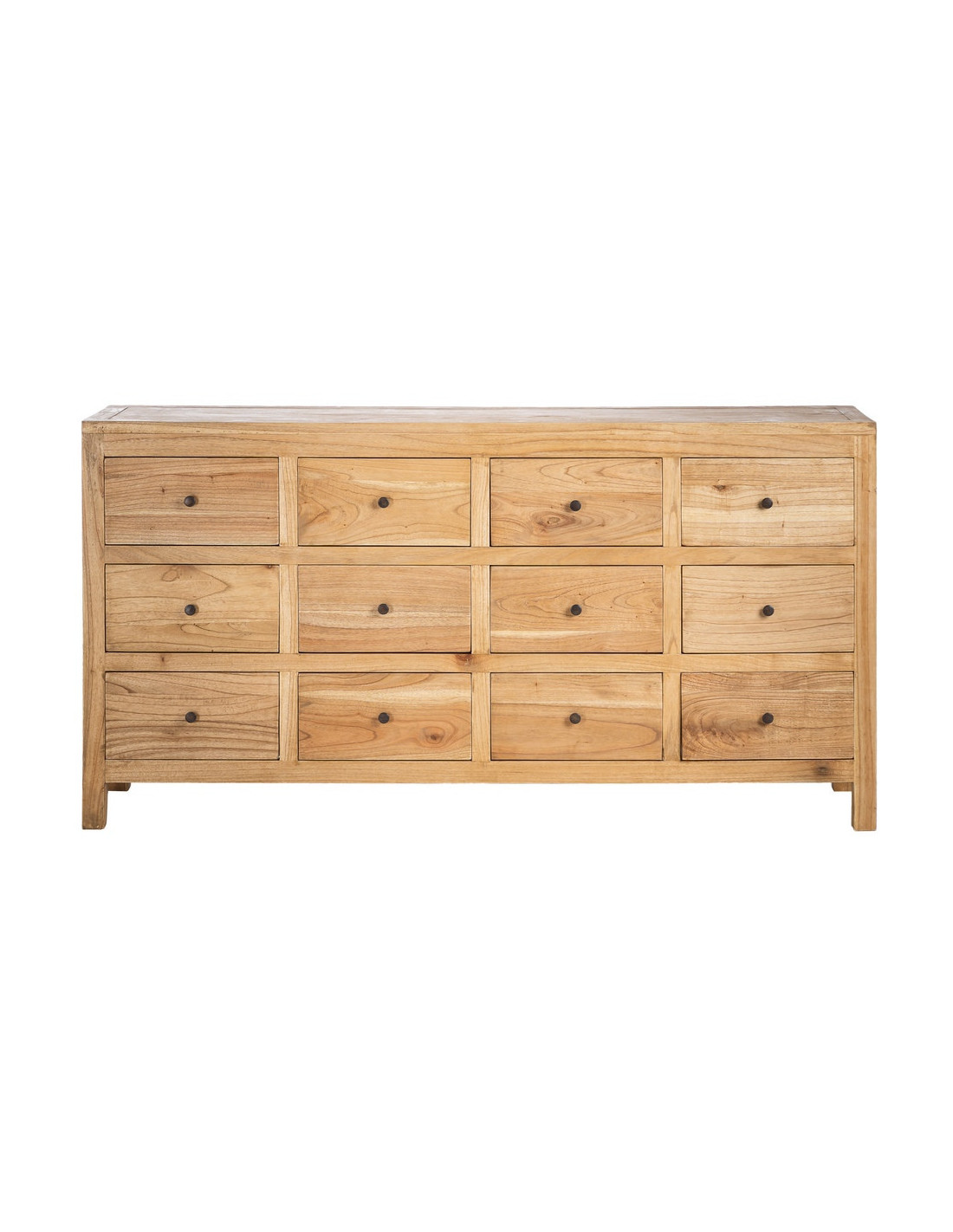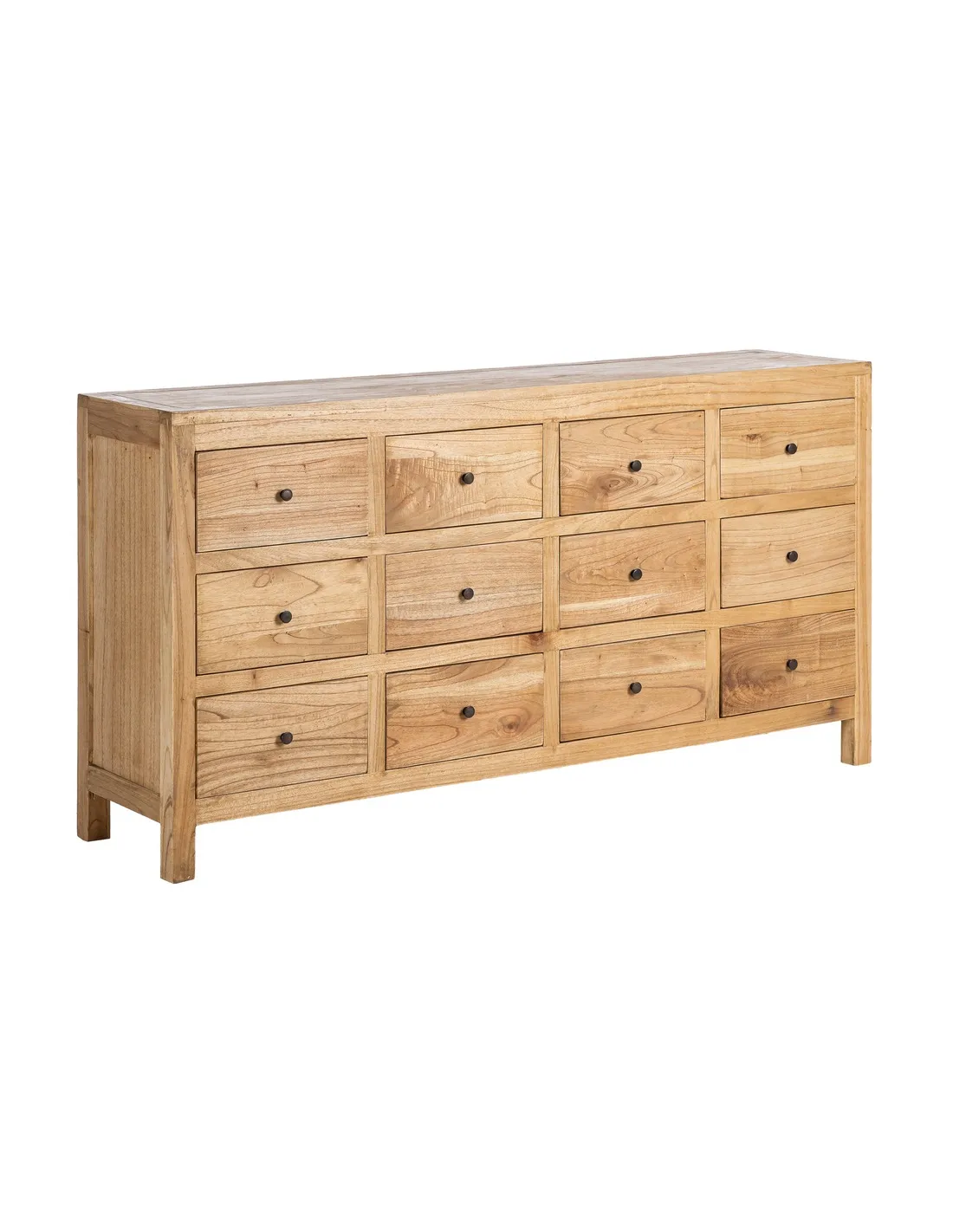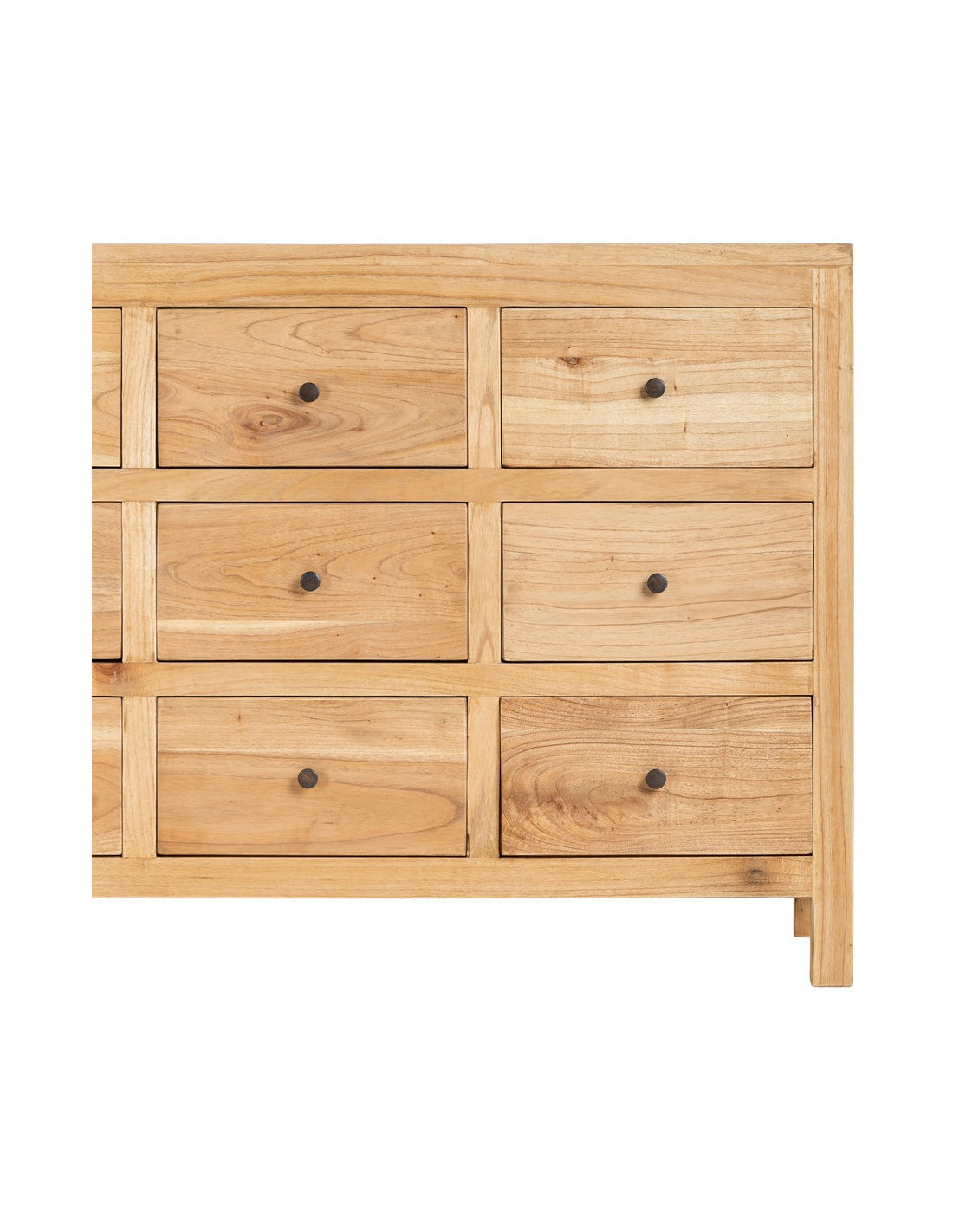 Grand Buffet rustique chic Bas 12 tiroirs en Bois de mindi Naturel Vera