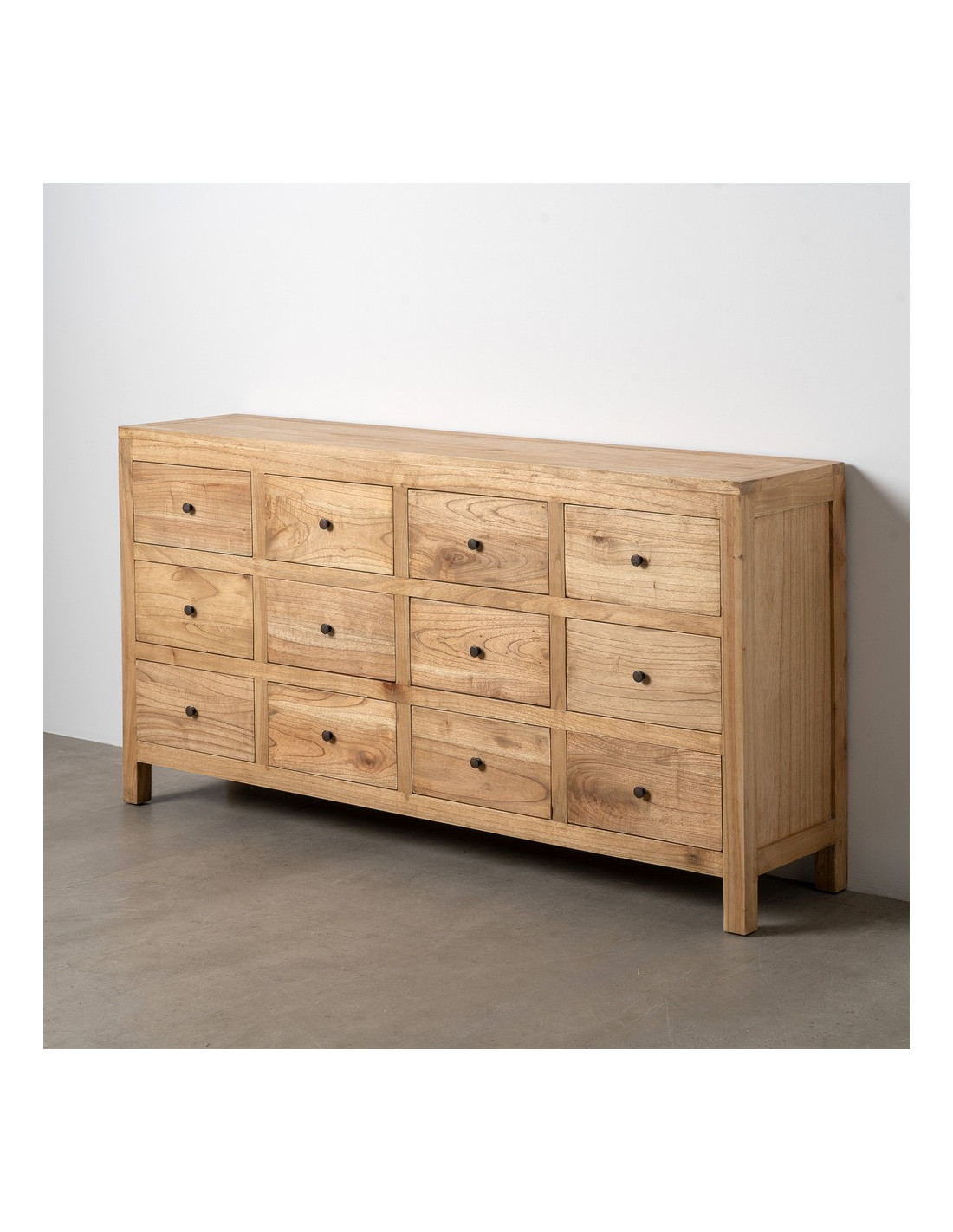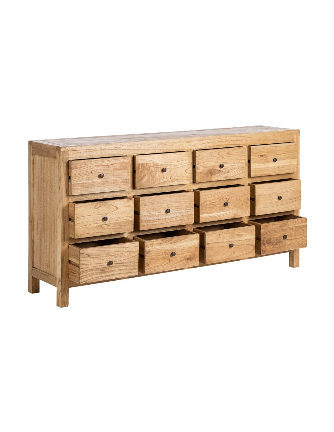 Grand Buffet rustique chic Bas 12 tiroirs en Bois de mindi Naturel Vera - 12