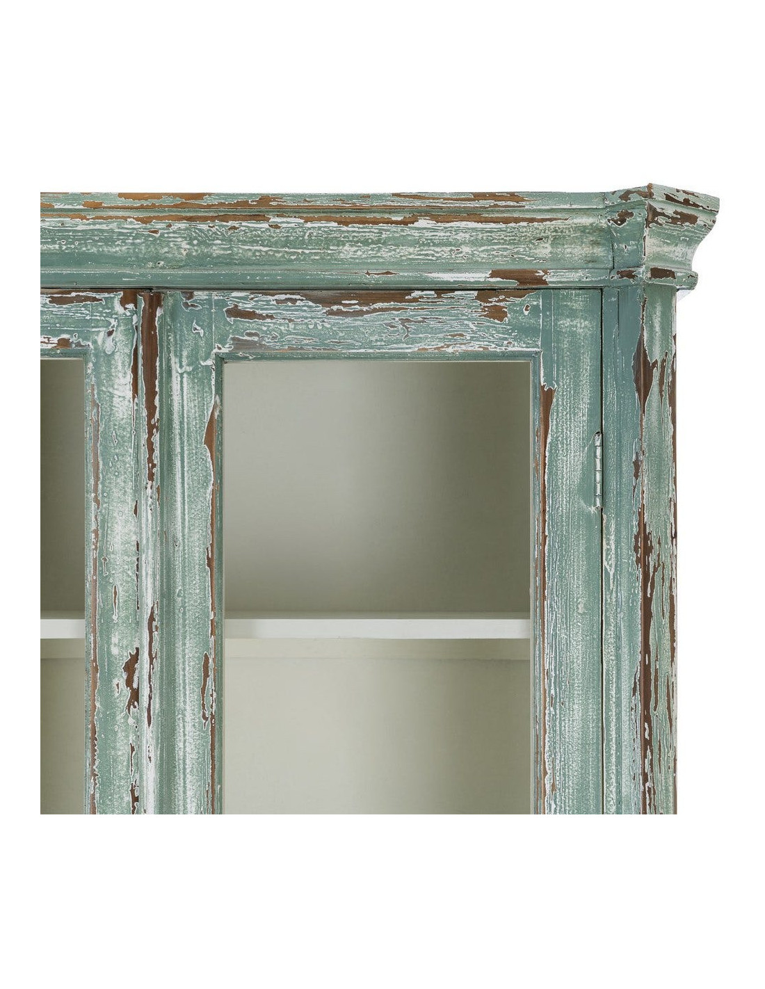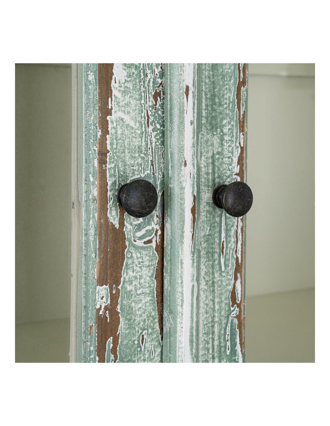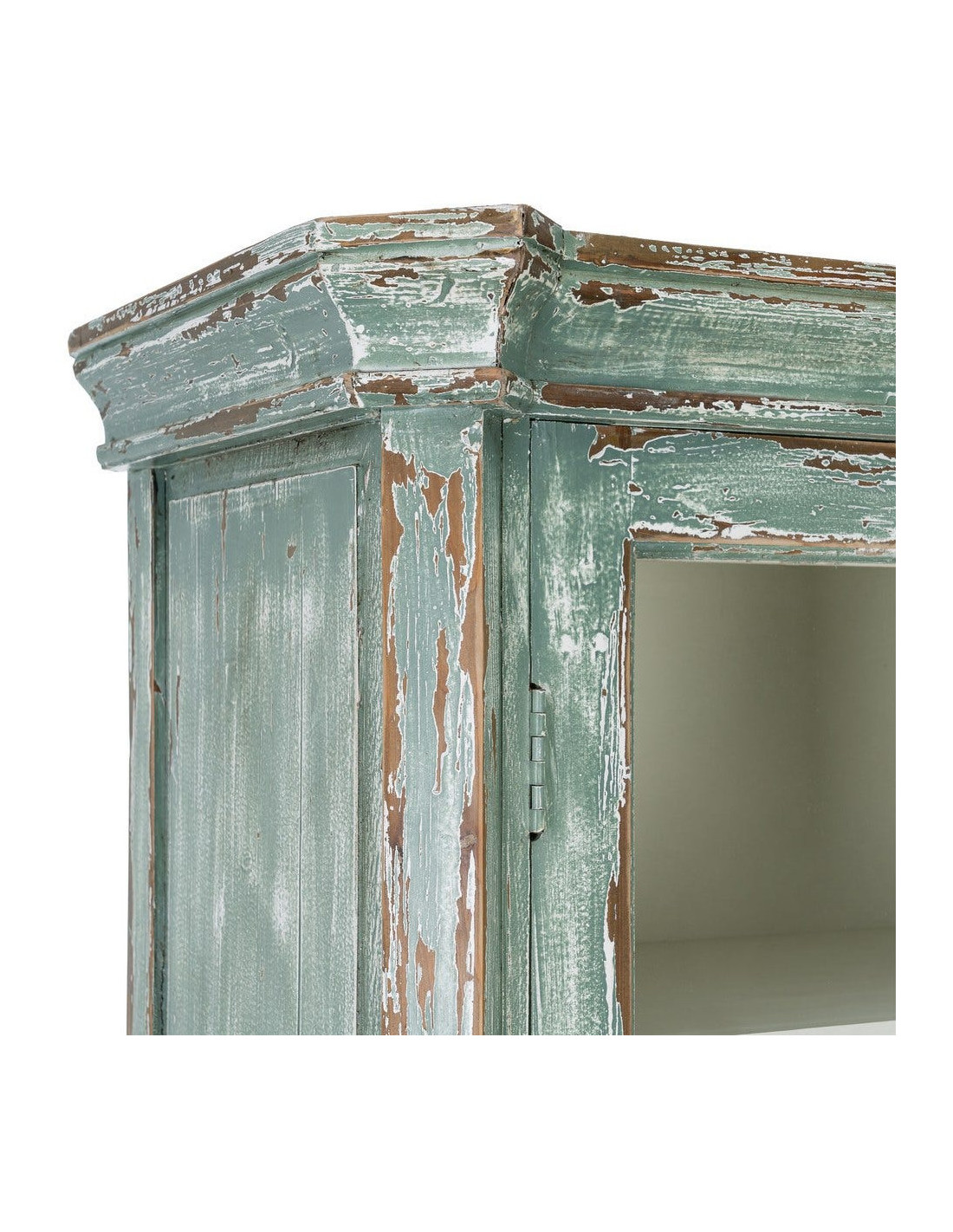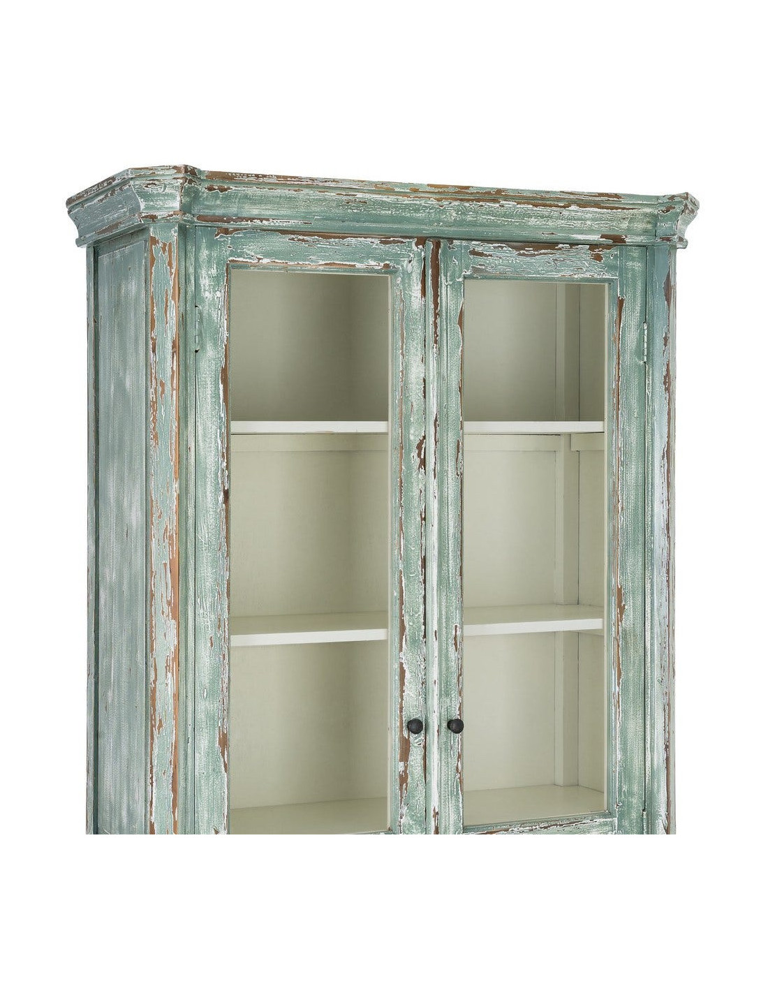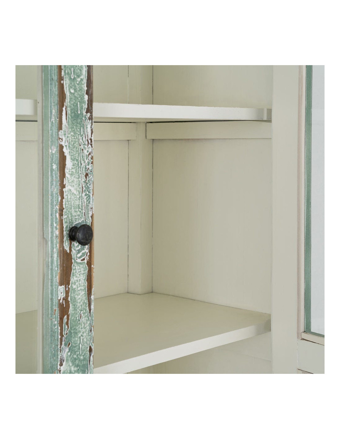 Grand Buffet Vaisselier bohème ethnique Haut 2 portes Bois recyclé Vert Patiné Verre Transparent Verdenzio