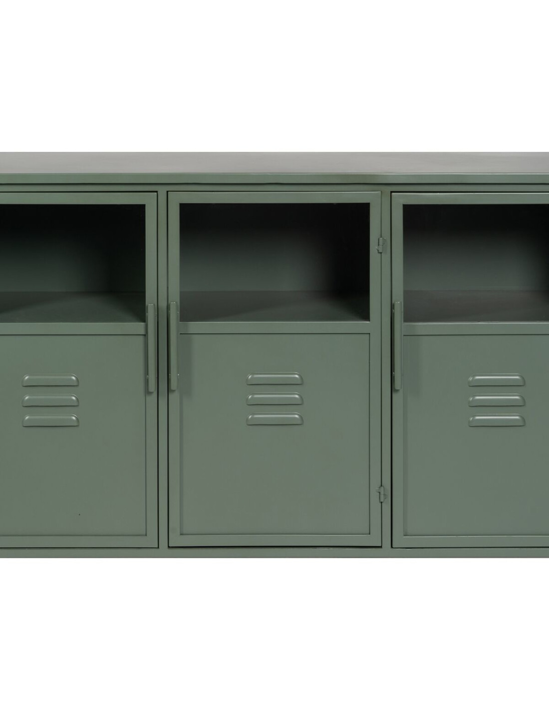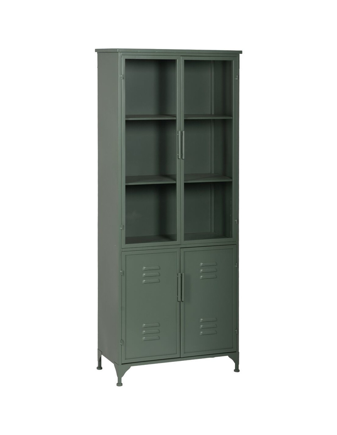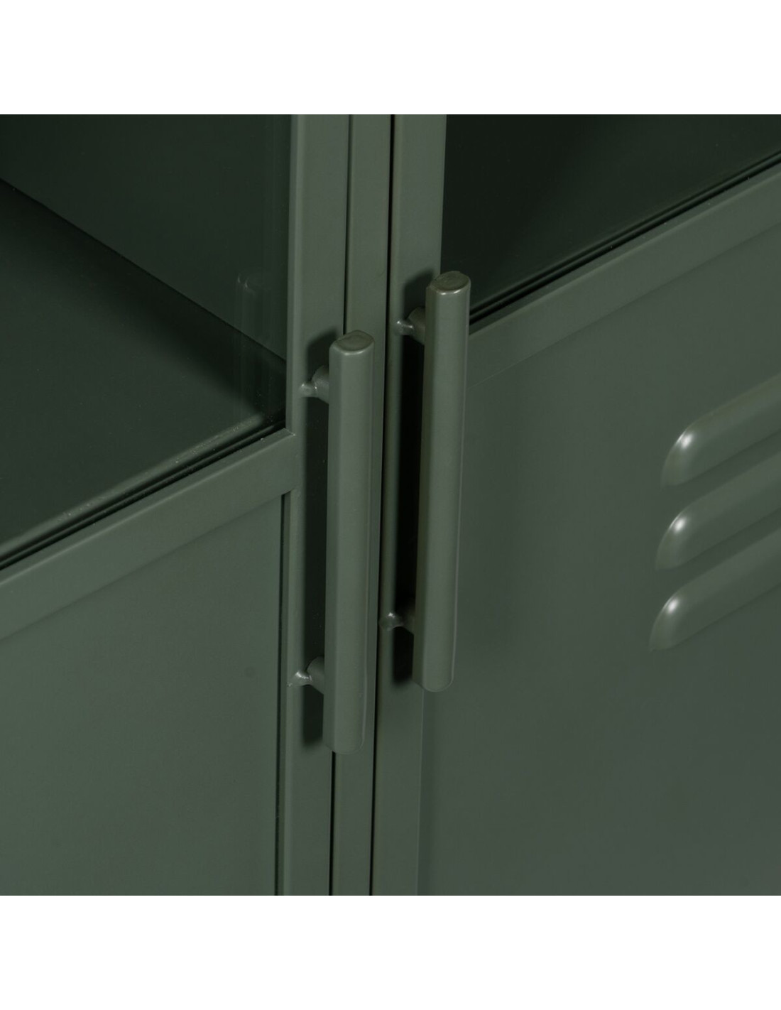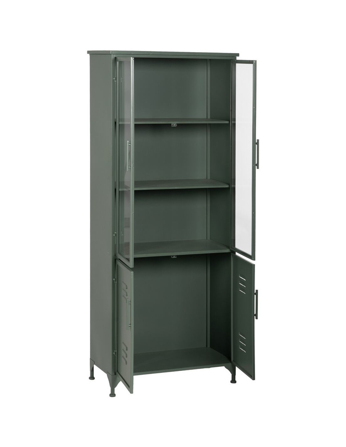 Grand Buffet Vitrine industriel Haut 4 portes en Métal Vert menthe Verre Transparent Caryl