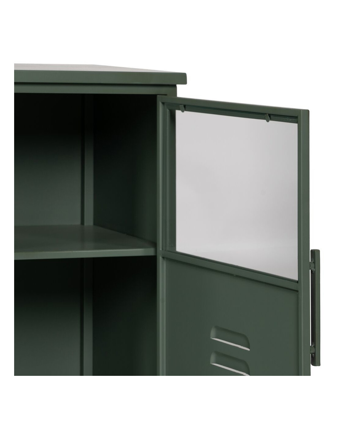 Grand Buffet Vitrine industriel Haut 4 portes en Métal Vert menthe Verre Transparent Caryl - 1