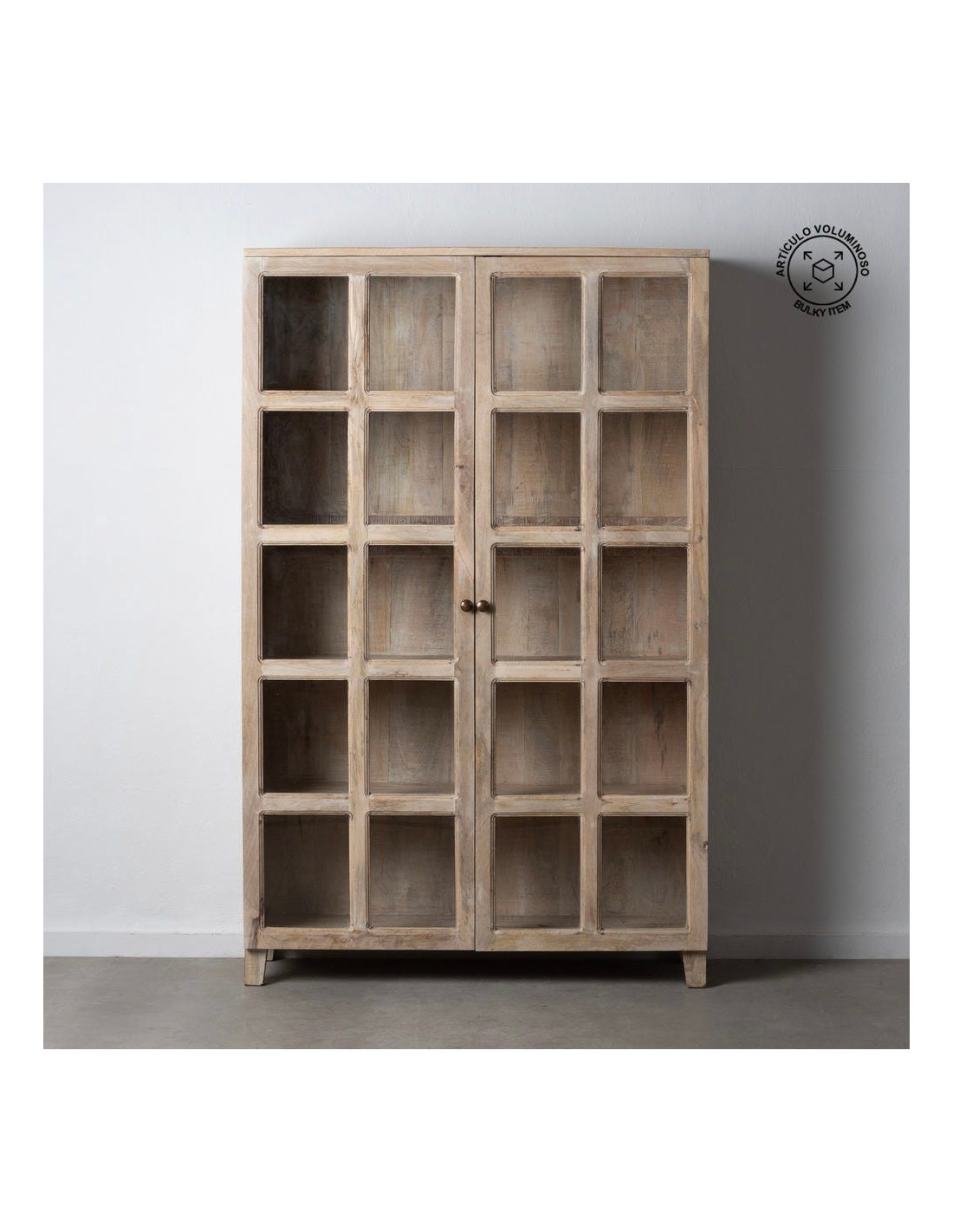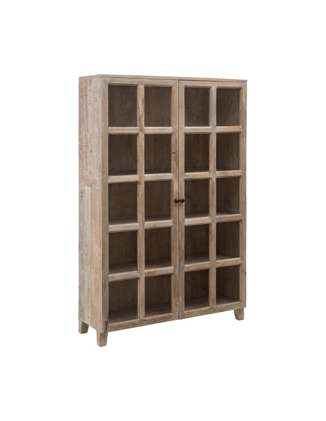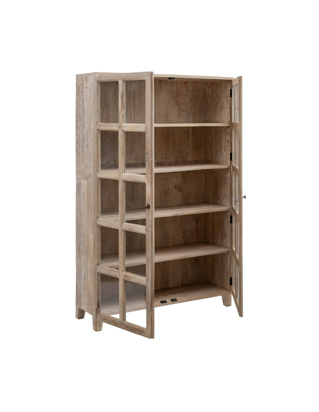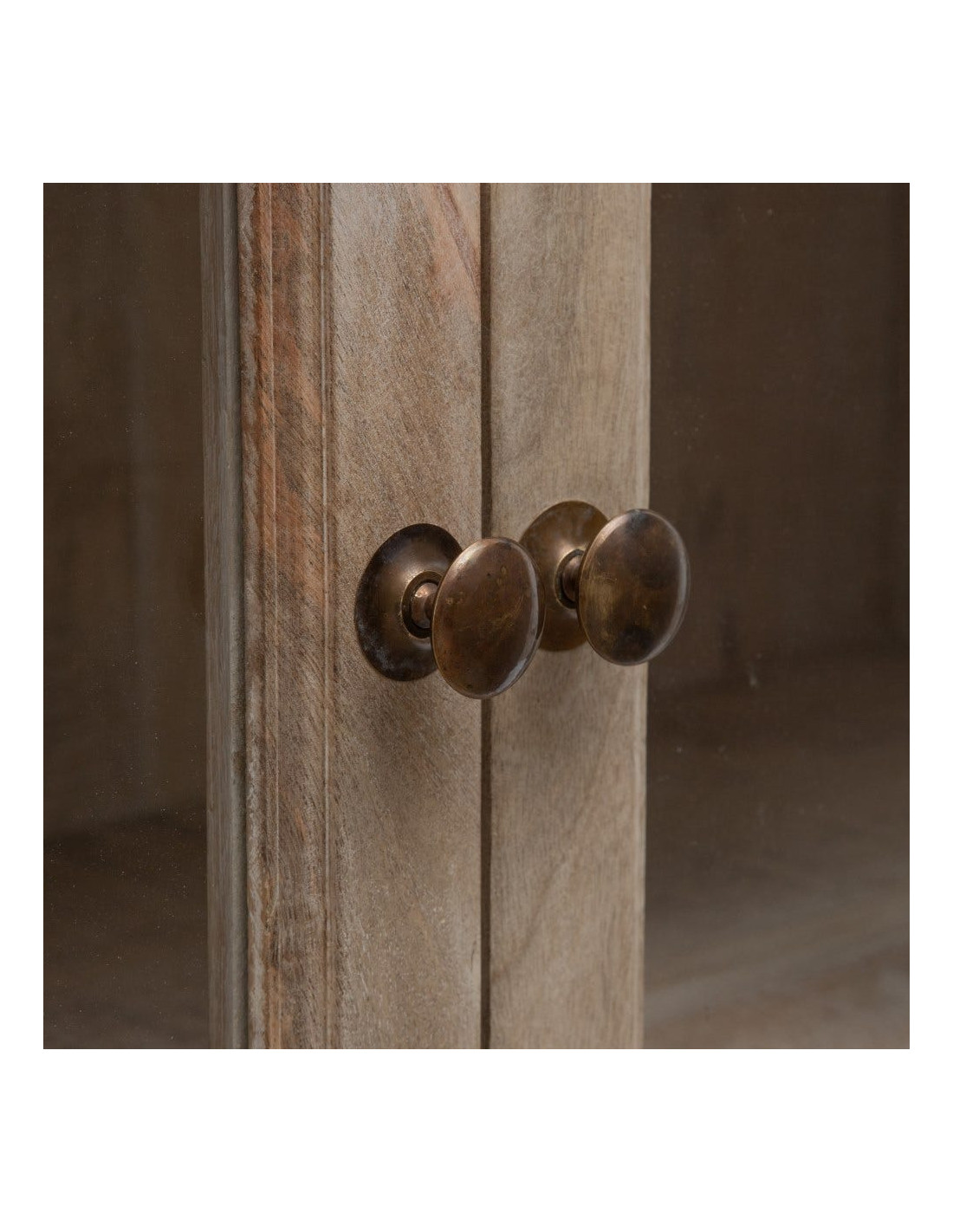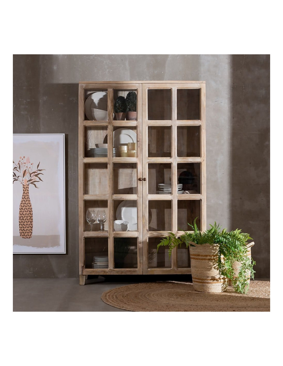 Grand Buffet Vitrine moderne Haut 2 portes en Bois de manguier Naturel Blanchi Verre Transparent Saimon