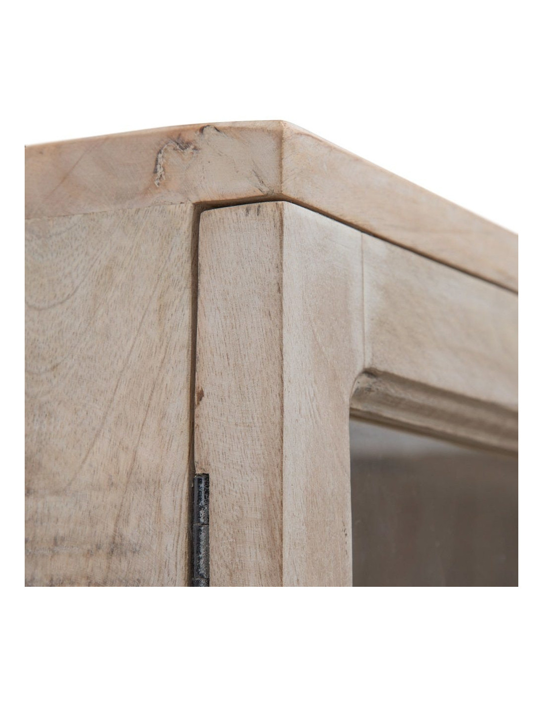 Grand Buffet Vitrine moderne Haut 2 portes en Bois de manguier Naturel Blanchi Verre Transparent Saimon - 3