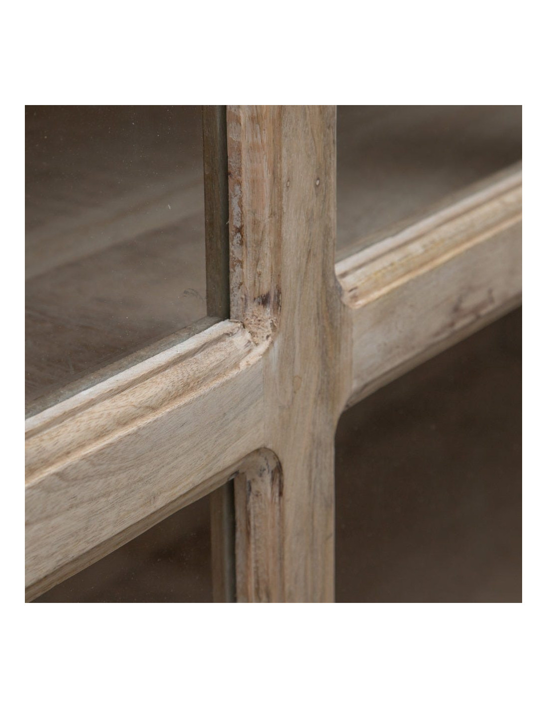 Grand Buffet Vitrine moderne Haut 2 portes en Bois de manguier Naturel Blanchi Verre Transparent Saimon - 10
