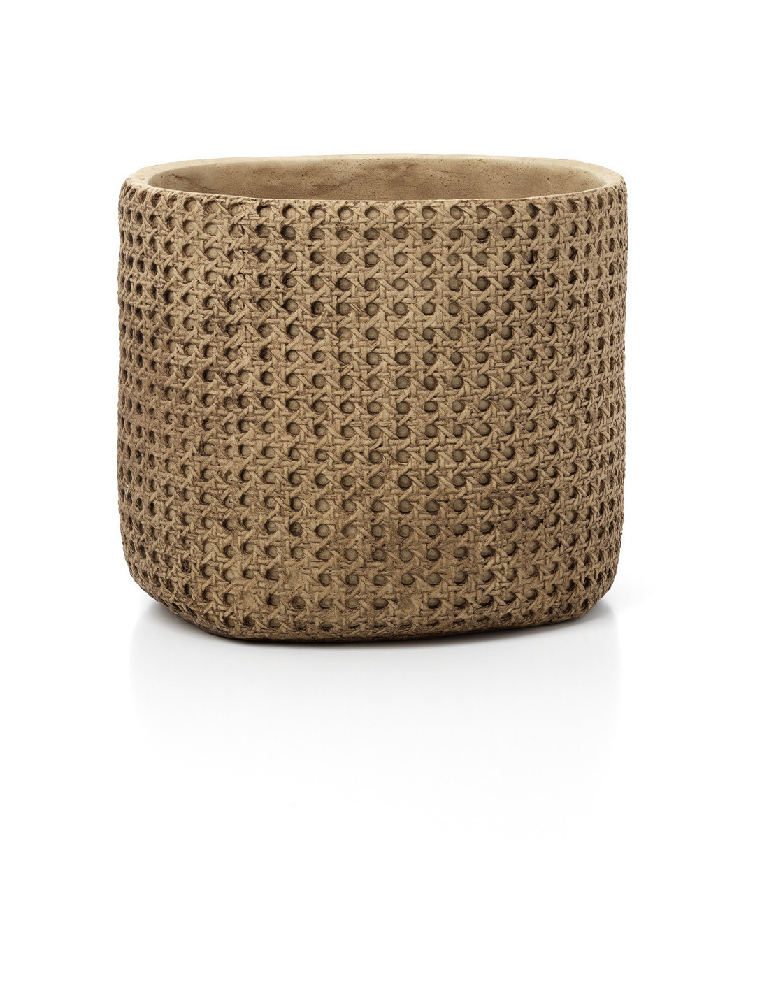 Grand Cache-pot bohème chic Rond D 26 cm Ciment Naturel Effet cannage rotin The RattanRock
