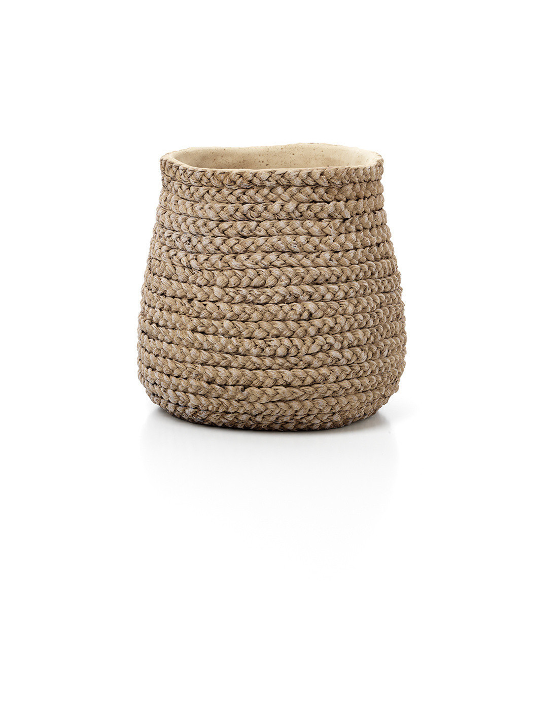 Grand Cache-pot bohème chic Rond D 26 cm Ciment Naturel Effet fibre tressée The Fake Braided