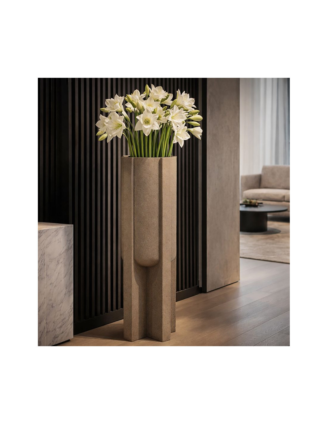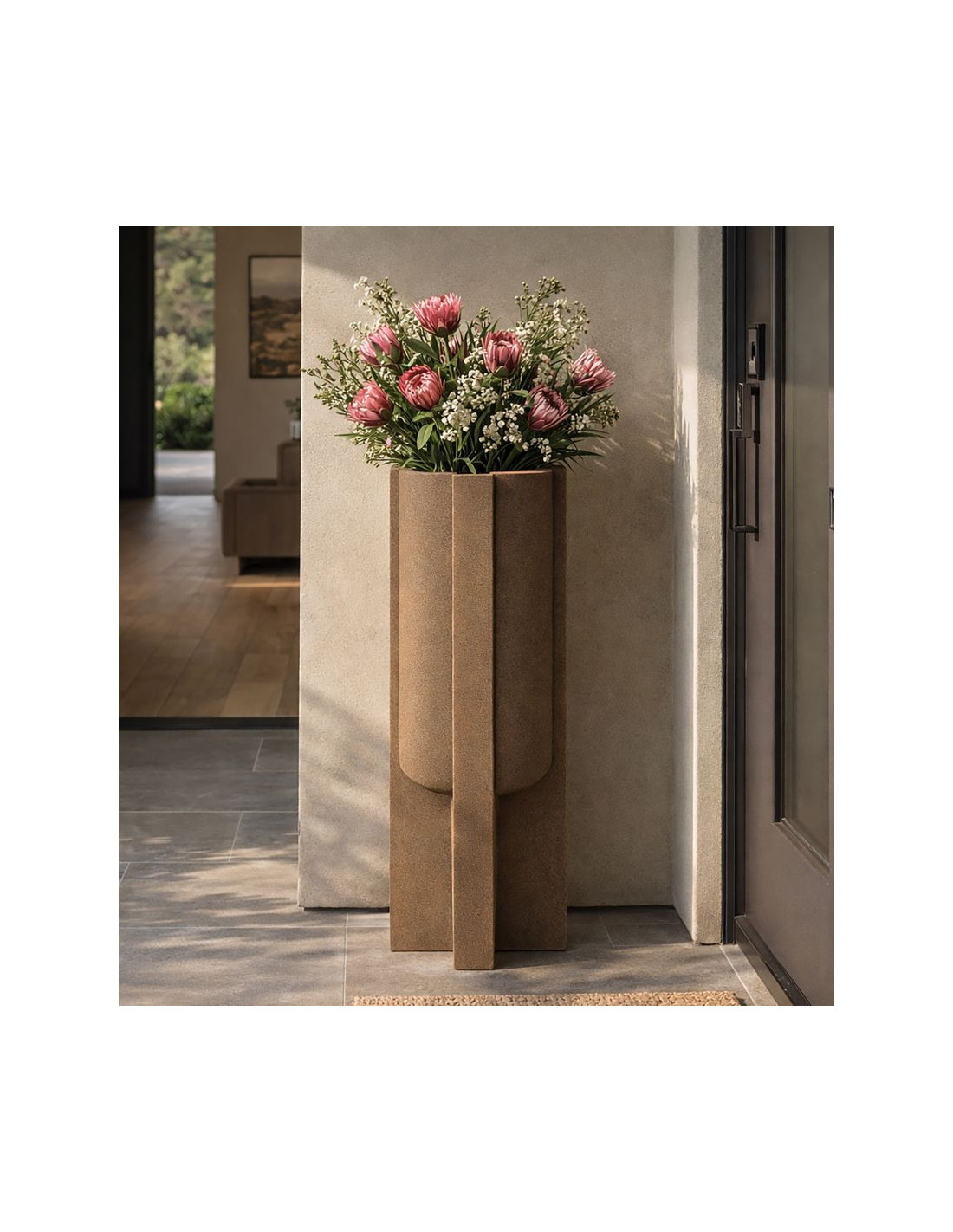 Grand Cache-pot de jardin Vase design Hauteur 101 cm Résine Marron Moai