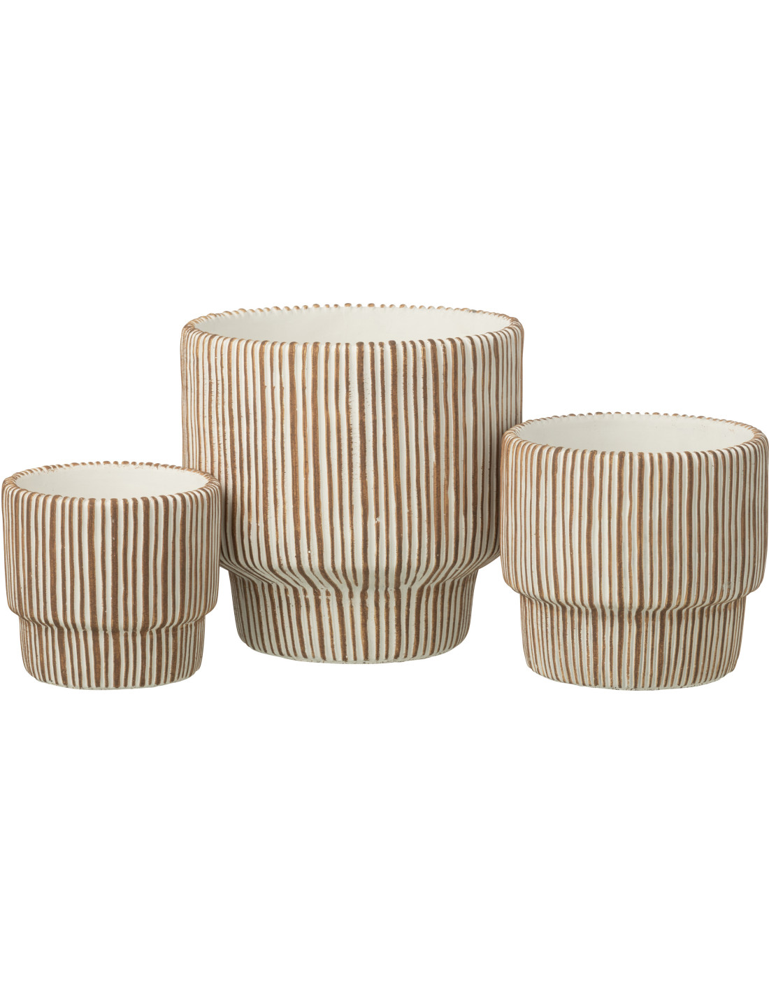 Grand Cache-pot extérieur ethnique chic Rond D 23 cm Ciment Marron Blanc Motif lignes Cannelia