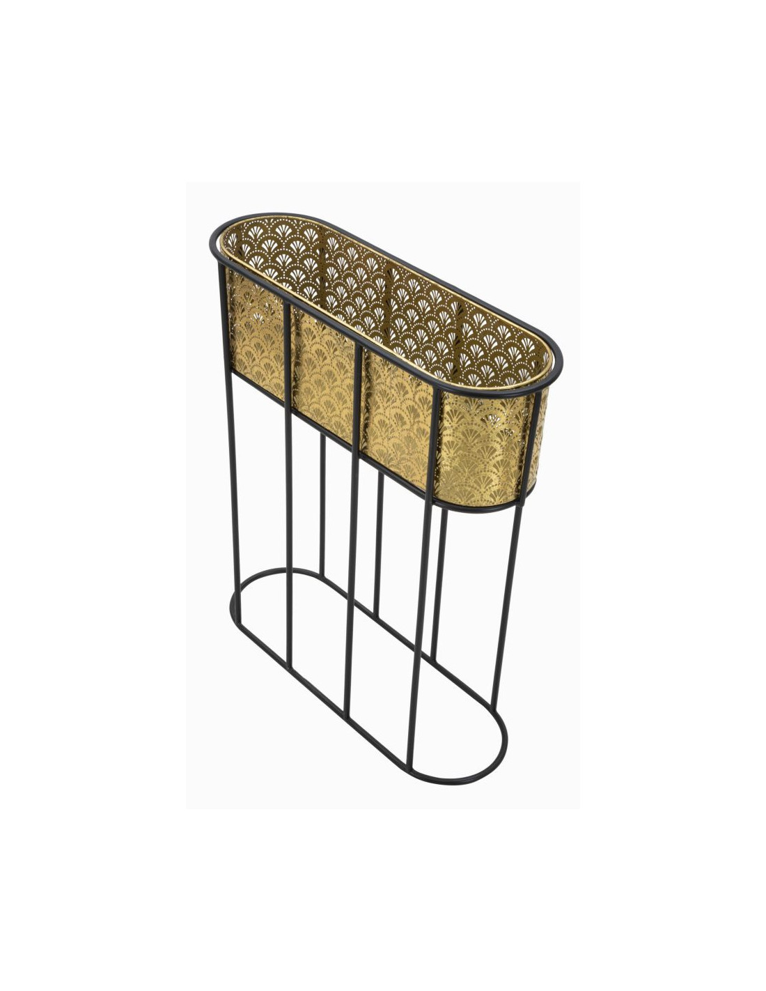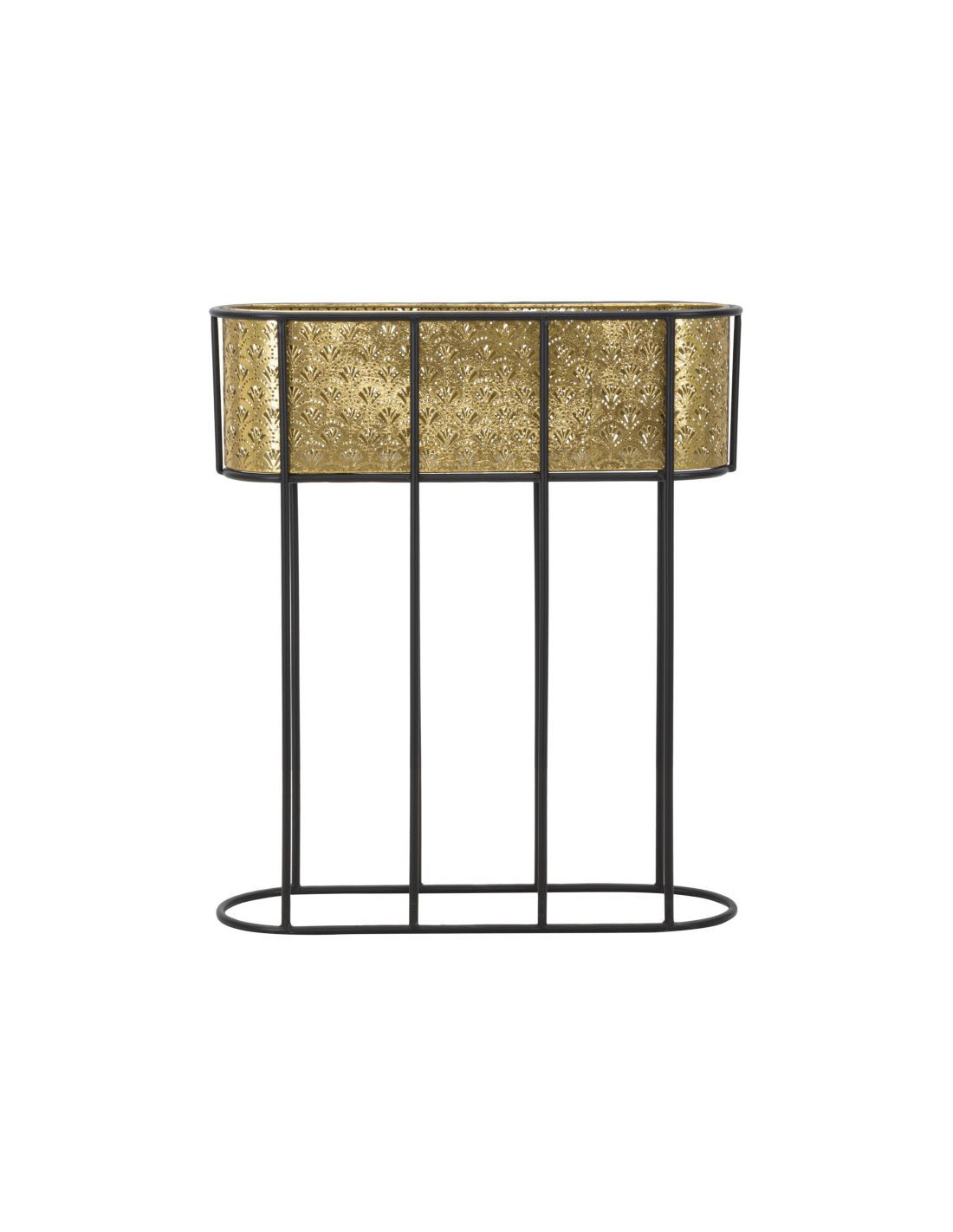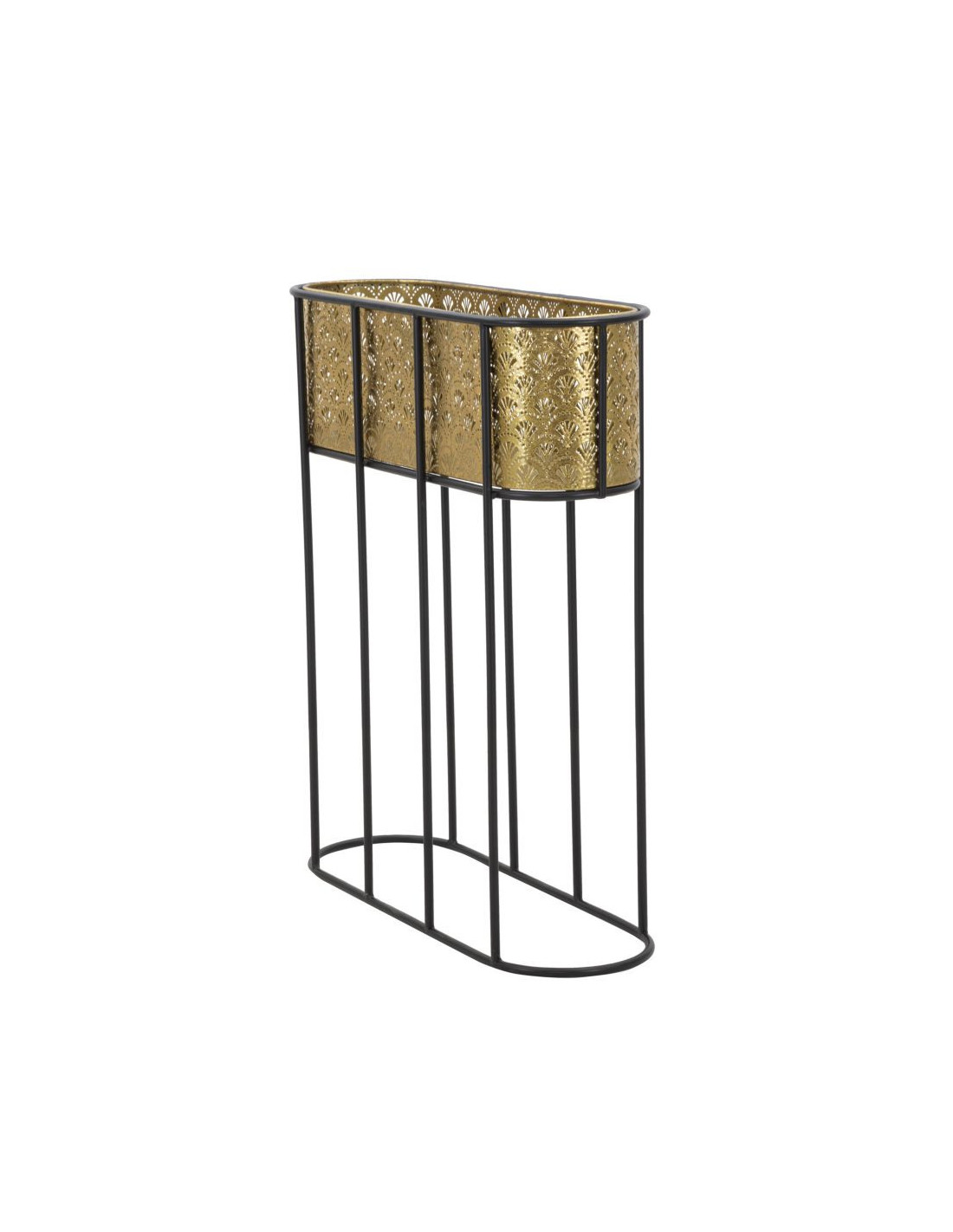Grand cache pot jardinière sur pied moderne Ovale Hauteur 70 cm en Métal Doré Noir Elyan