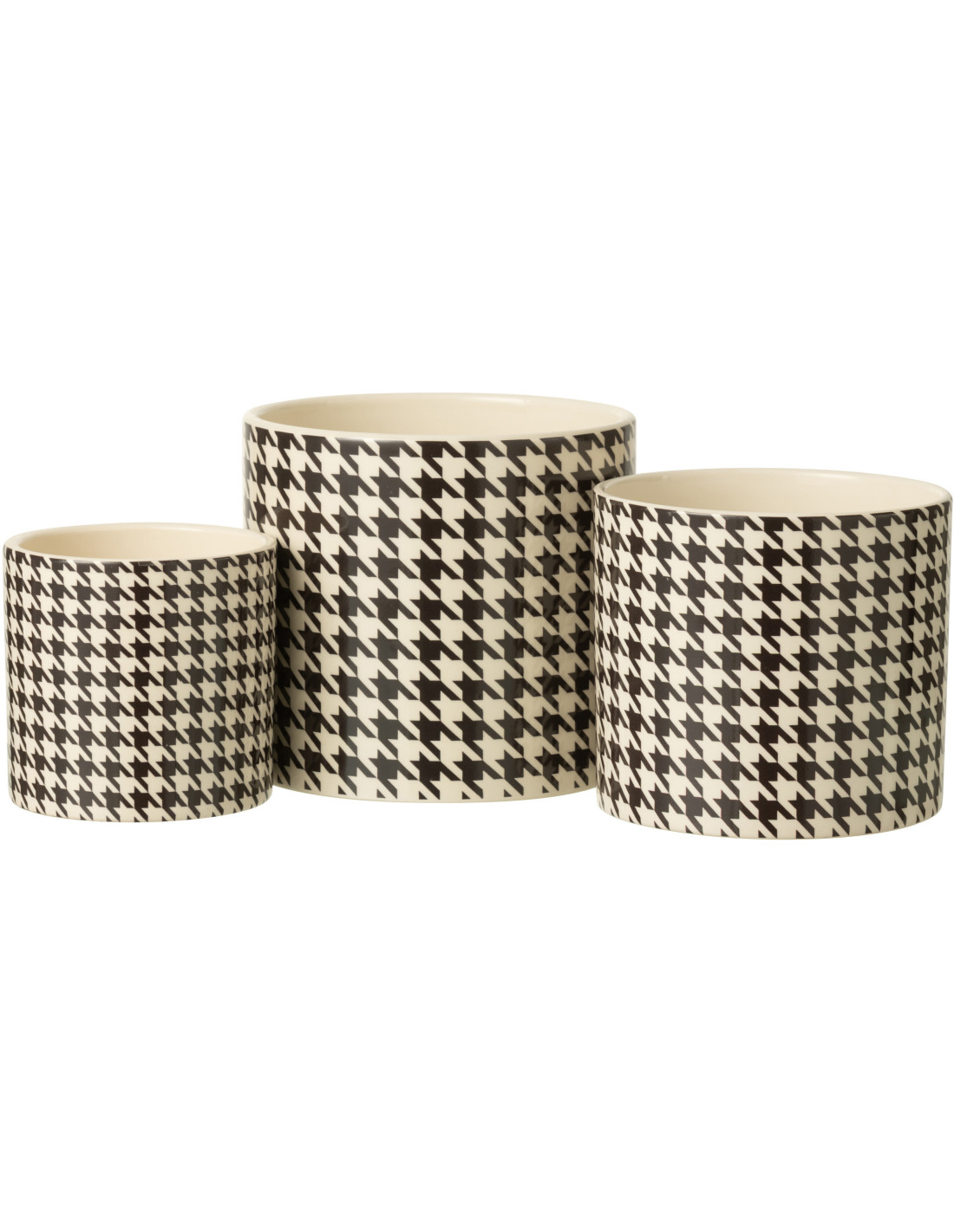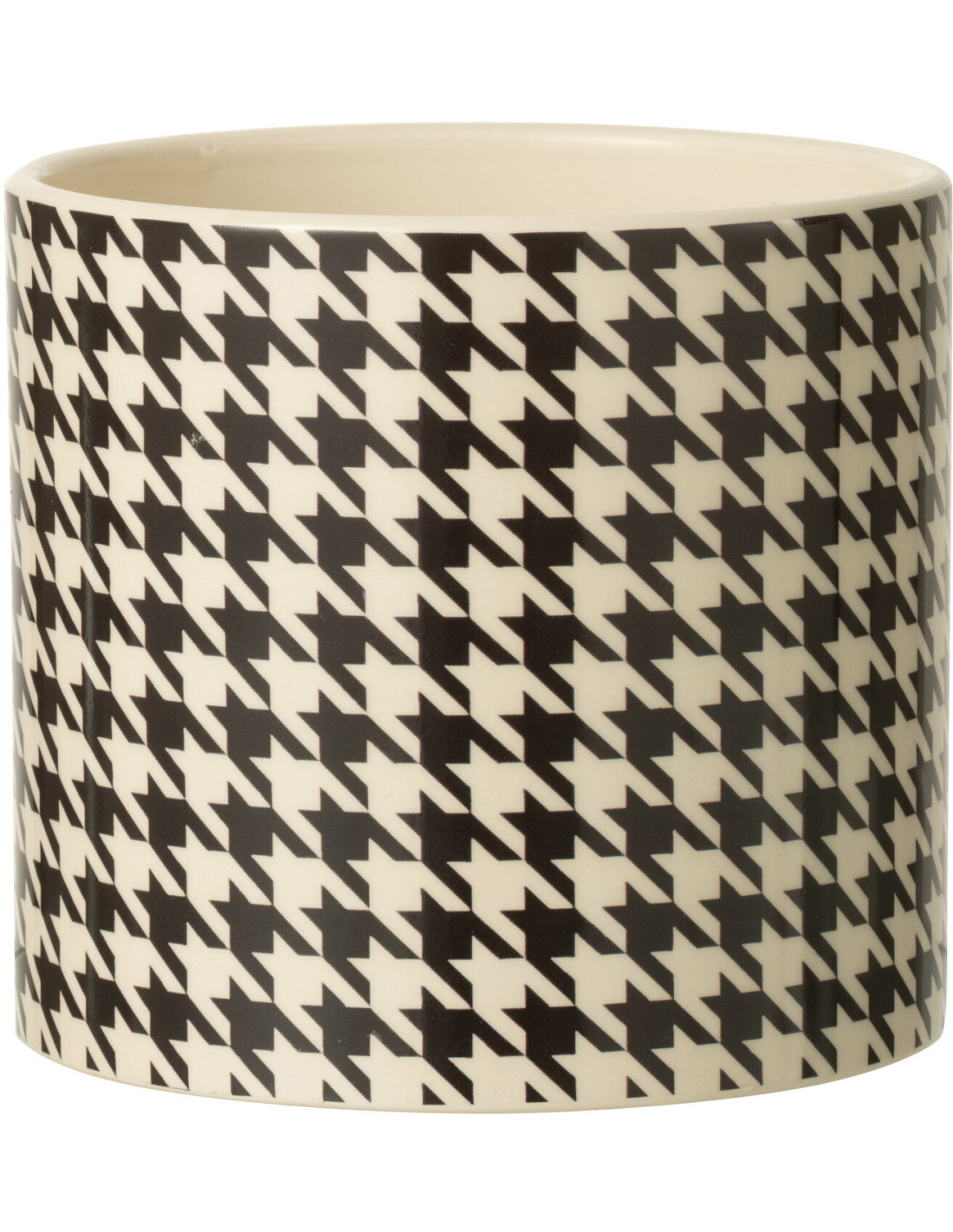 Grand Cache pot moderne Rond Diamètre 15 cm en Céramique Noir Blanc Motif pied de poule Margo