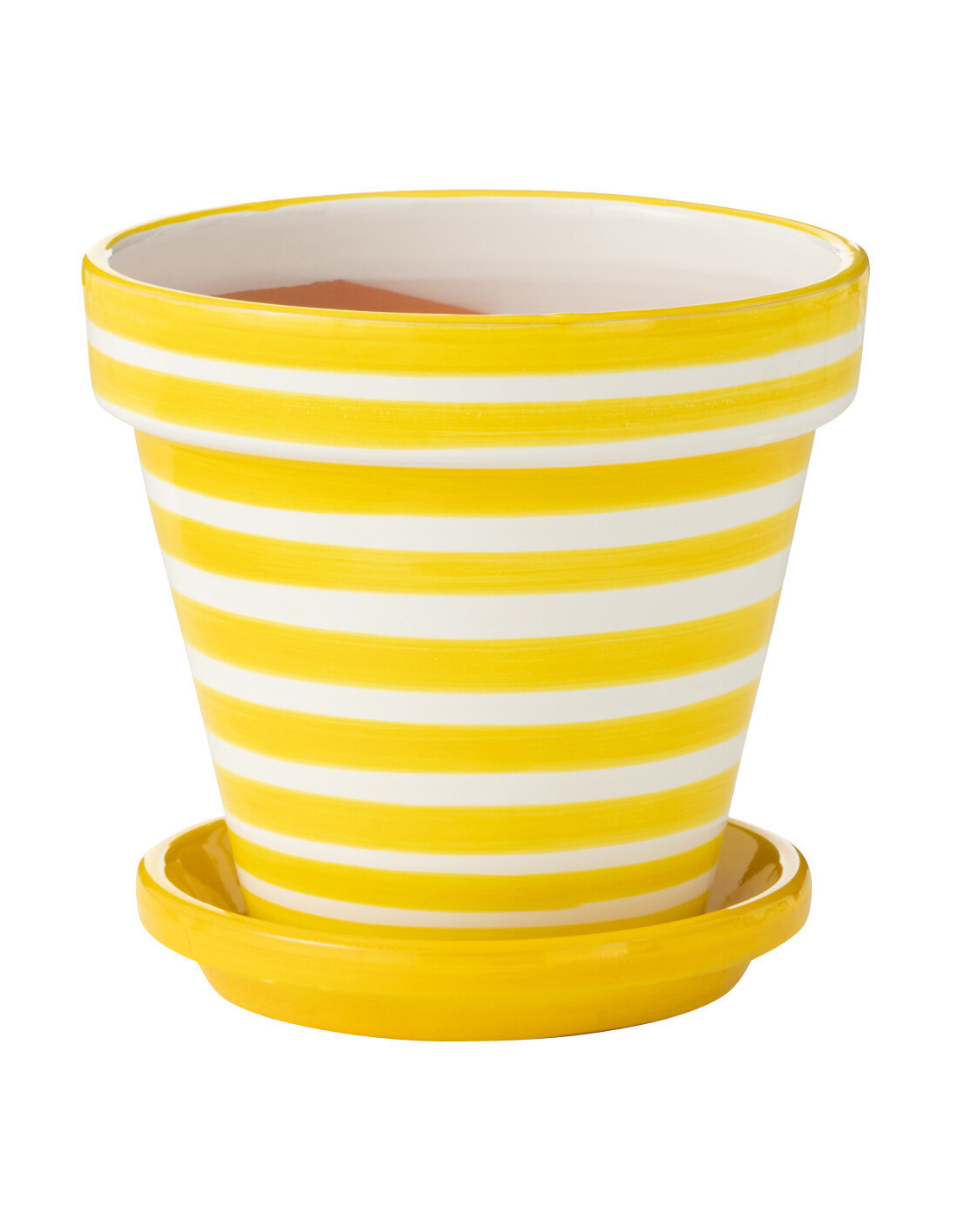Grand Cache pot original extérieur Rond Diamètre 27 cm en Céramique Jaune Blanc Motif lignes Granada - 1