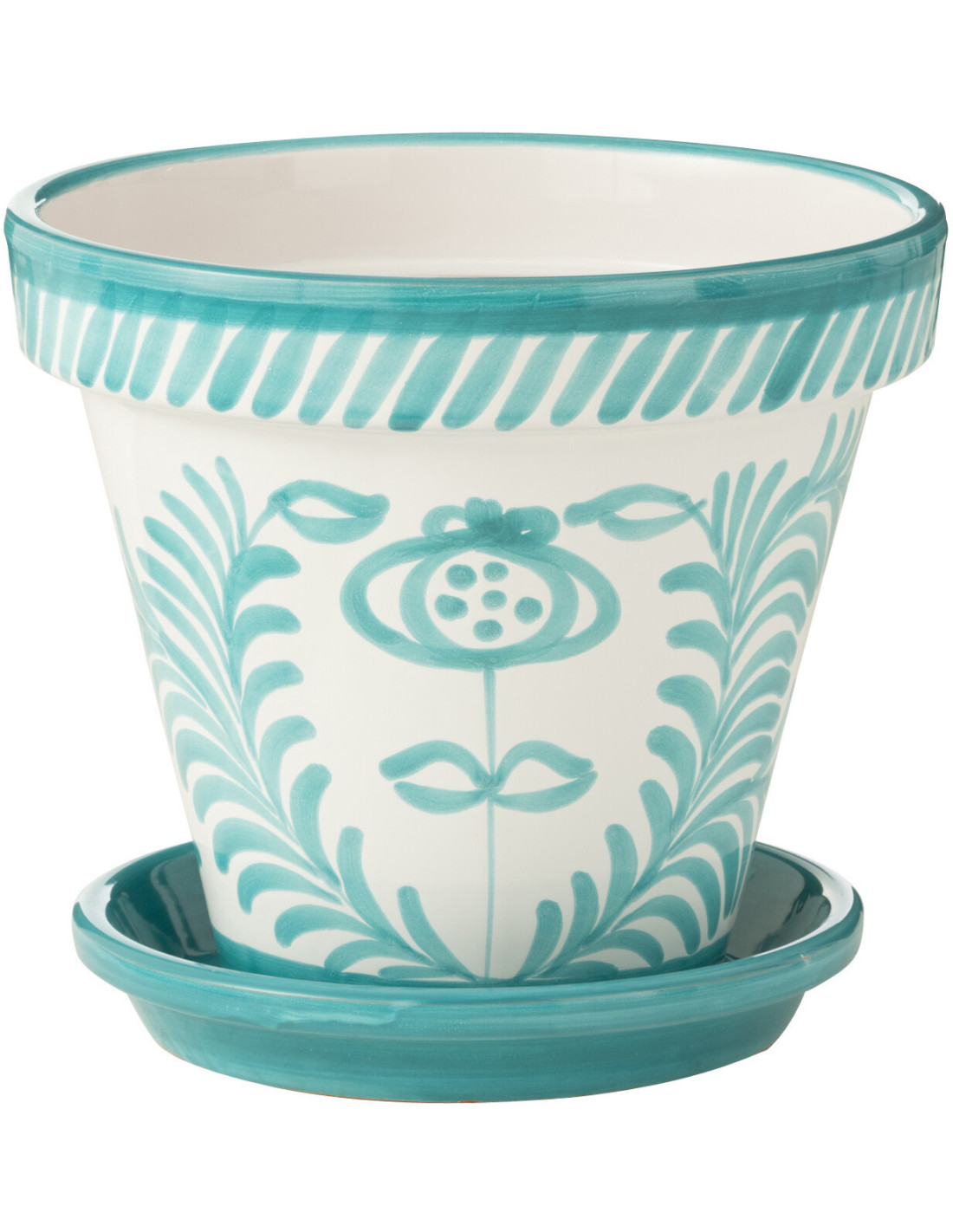 Grand Cache pot original extérieur Rond Diamètre 35 cm en Céramique Bleu aqua Blanc Motif fleur Granada - 1