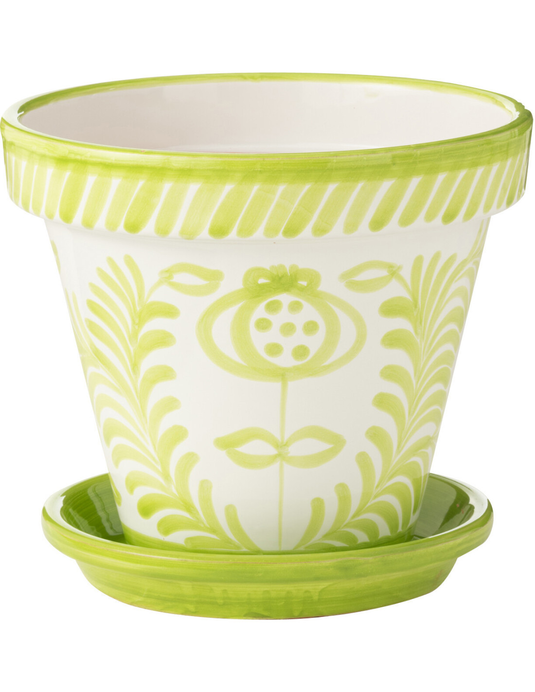 Grand Cache pot original extérieur Rond Diamètre 35 cm en Céramique Vert Blanc Motif fleur Granada