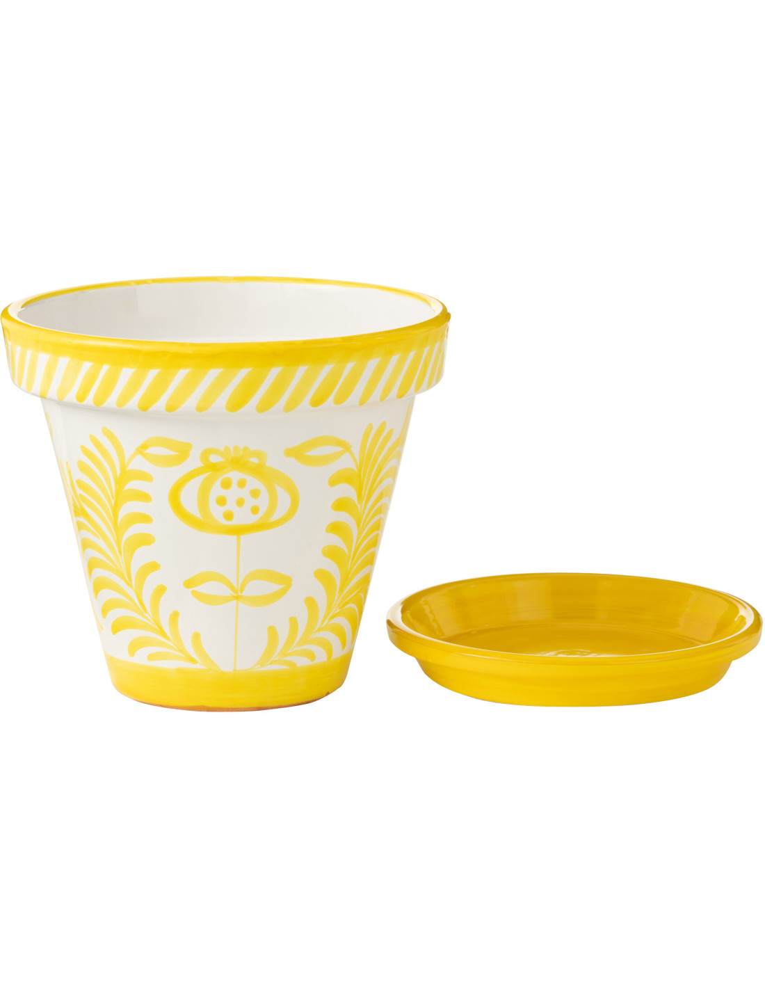 Grand Cache pot original extérieur Rond Diamètre 50 cm en Céramique Jaune Blanc Motif fleur Granada