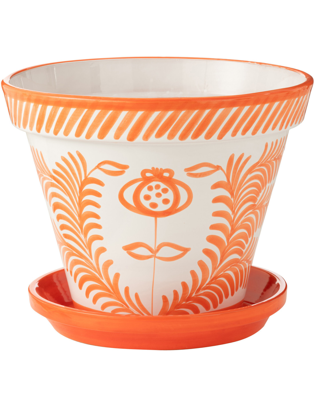 Grand Cache pot original extérieur Rond Diamètre 50 cm en Céramique Orange Blanc Motif fleur Granada - 1