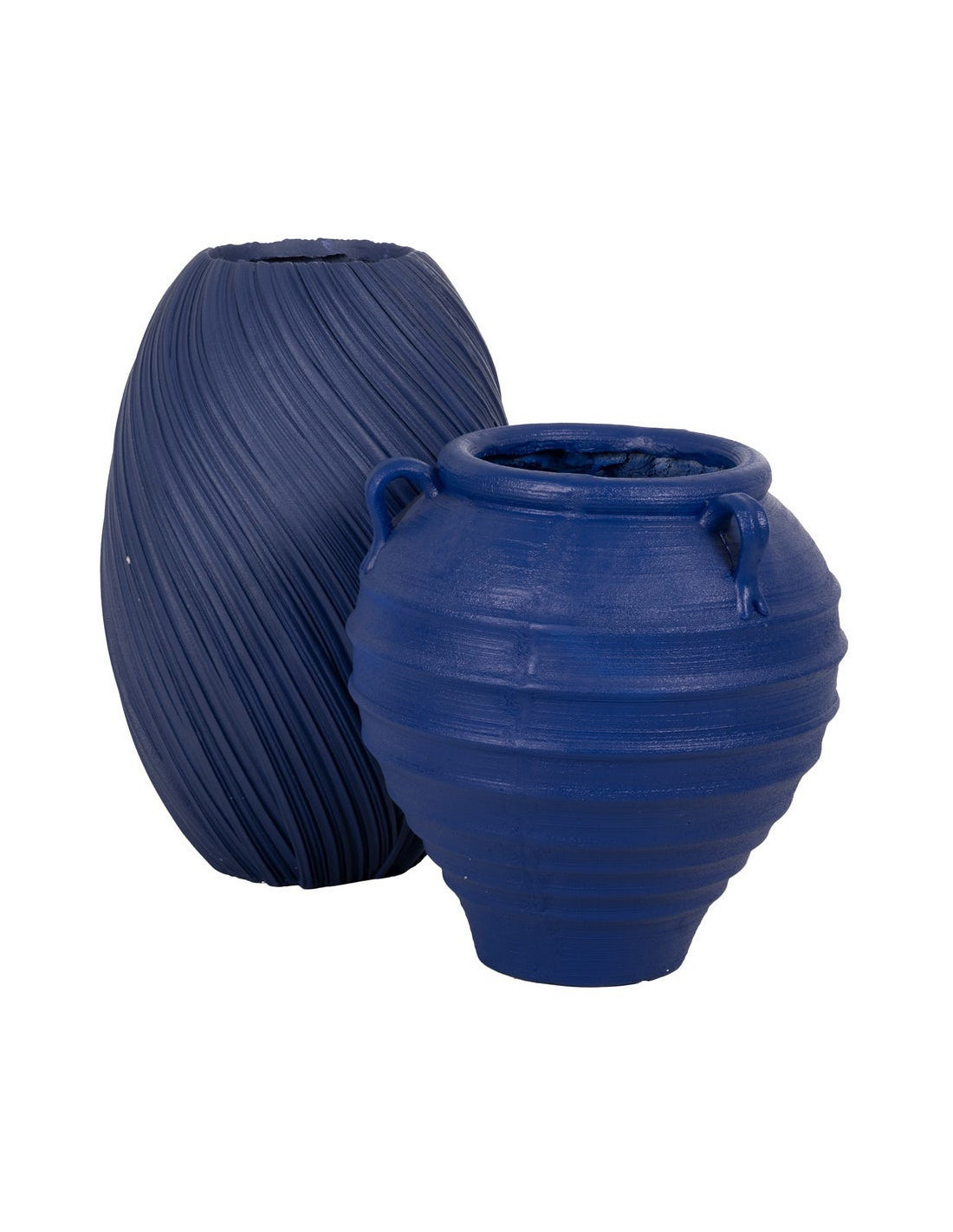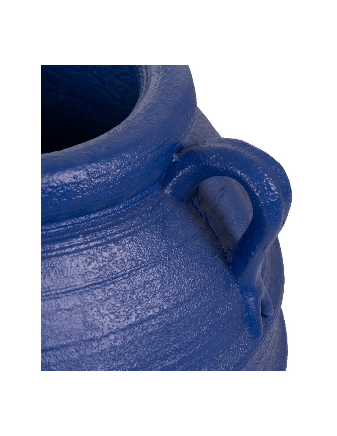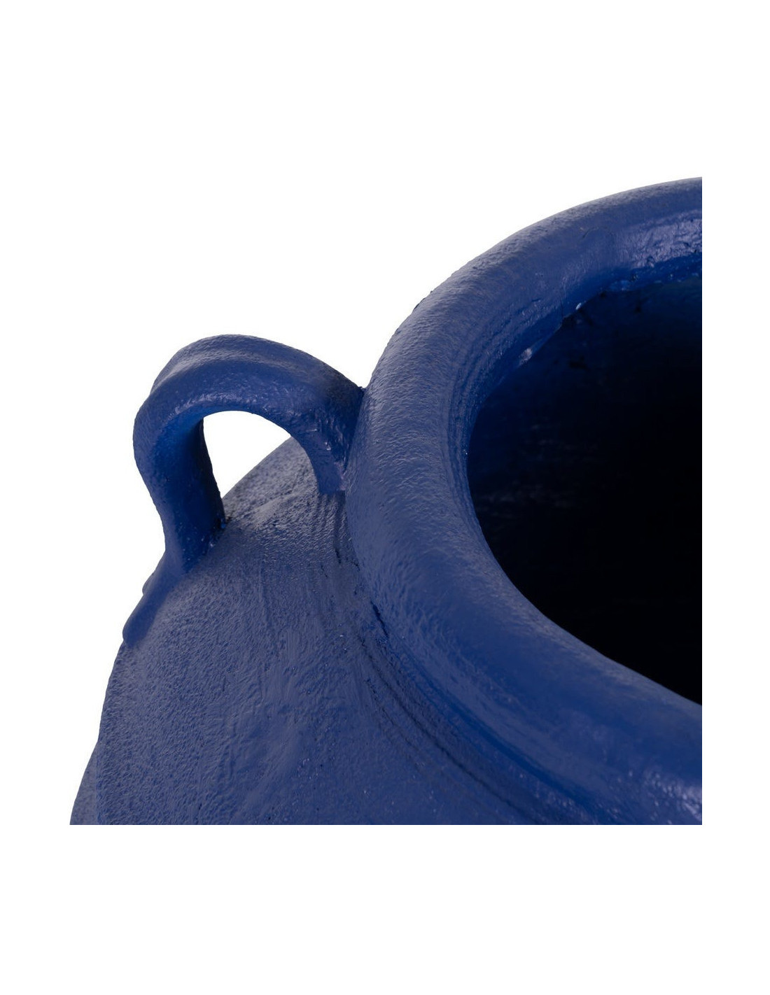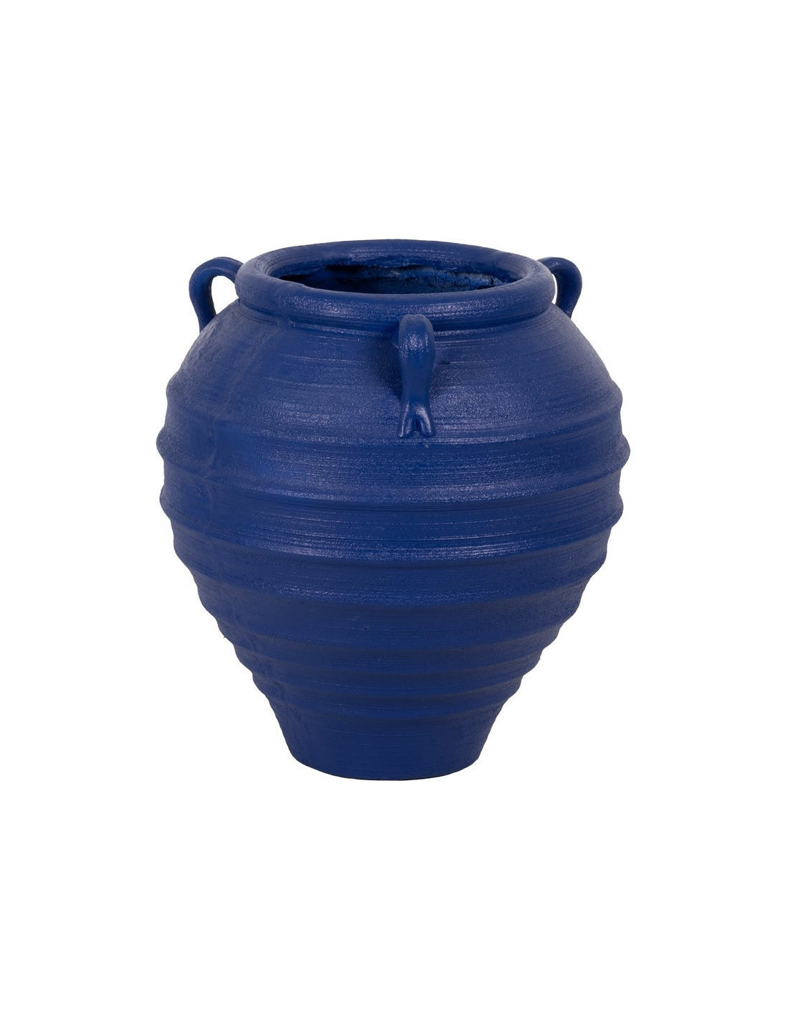 Zurénia ne cherche pas à être discret. Sa silhouette amphore, ses anses latérales et sa teinte bleu foncé lui donnent une présence visuelle immédiate, idéale pour structurer un extérieur ou un grand espace intérieur.