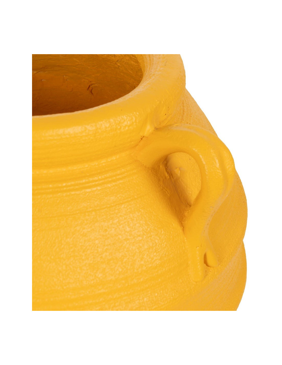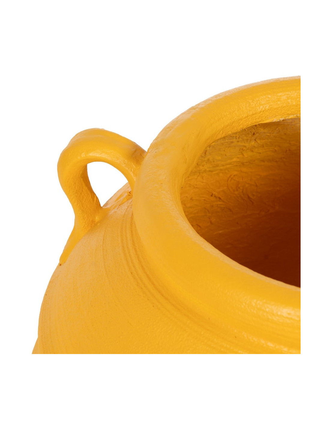 Cache-pot en résine de magnésium finition jaune. Sans trou de drainage. De légères variations peuvent apparaître et participent au caractère du produit.