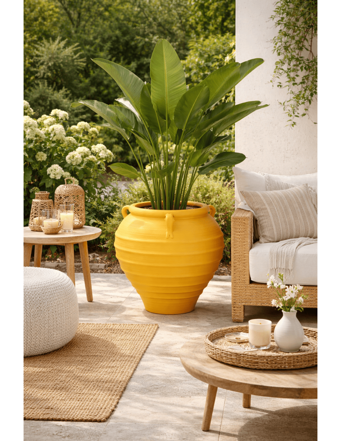 Un cache-pot sculptural qui attire immédiatement le regard. Zurénia associe une forme amphore généreuse à une finition jaune lumineuse pour dynamiser votre décoration intérieure ou extérieure.