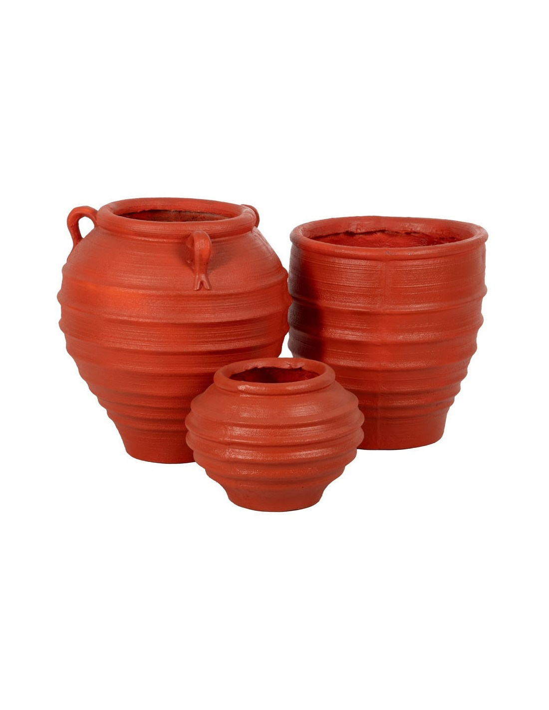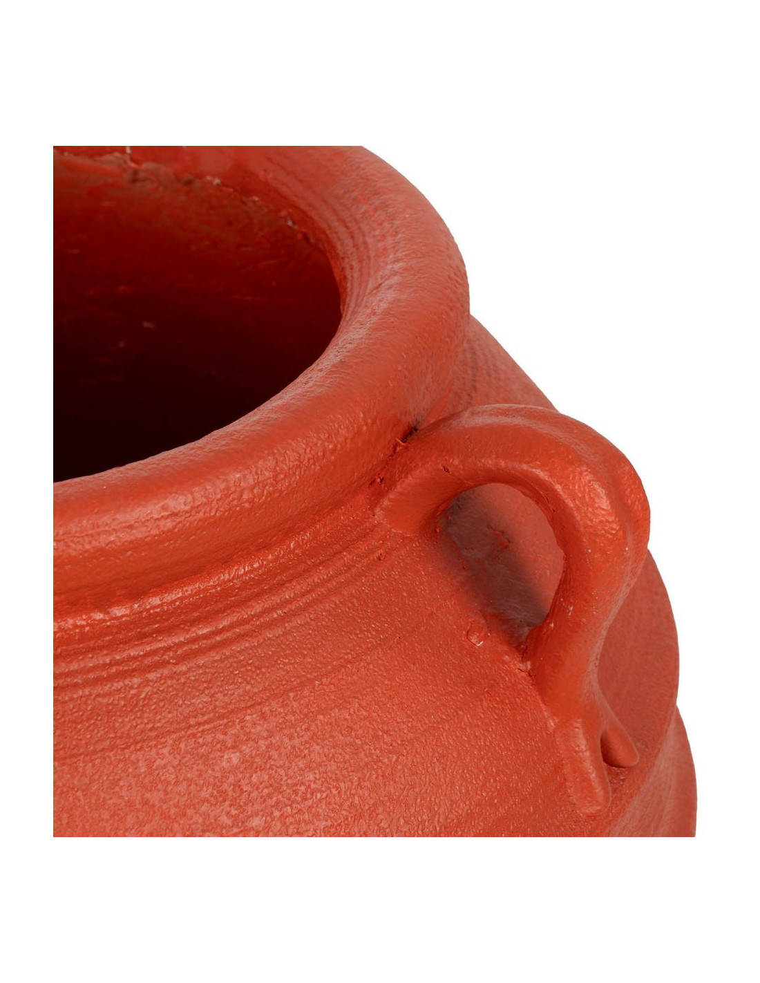 La finition terracotta apporte une intensité visuelle immédiate. Elle évoque les terres cuites méditerranéennes et réchauffe naturellement l’ambiance, que le cache-pot soit placé seul ou accompagné d’autres pièces.