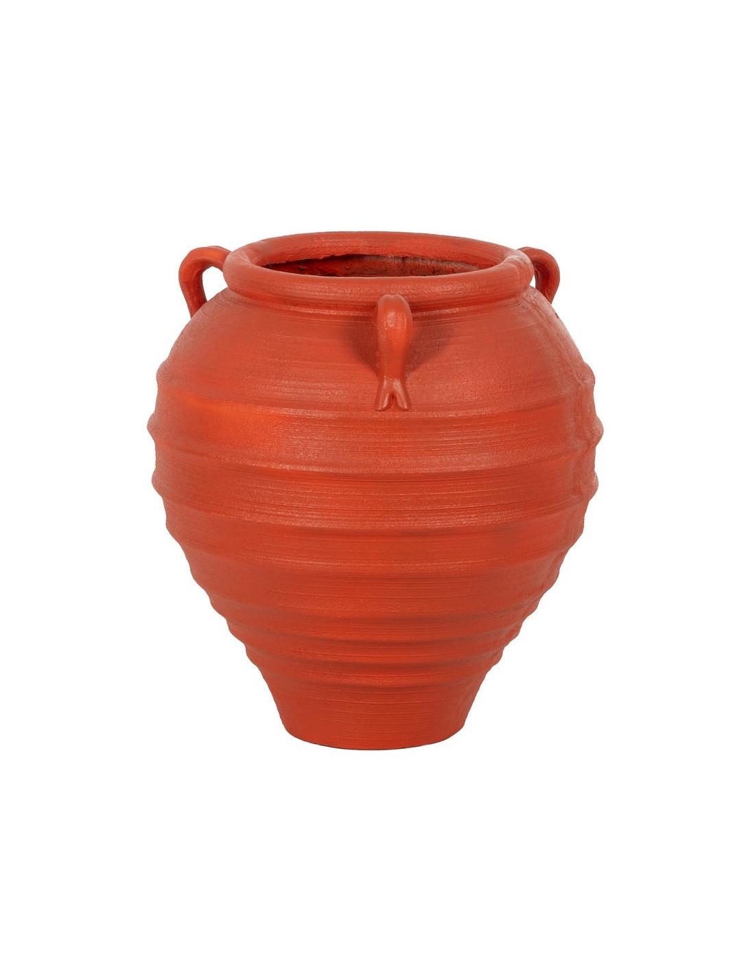 Zurénia impose une présence forte sans avoir besoin d’en faire trop. Sa silhouette amphore, ses anses latérales et ses reliefs horizontaux lui donnent une vraie personnalité décorative, parfaite pour habiller un extérieur ou un grand volume intérieur.